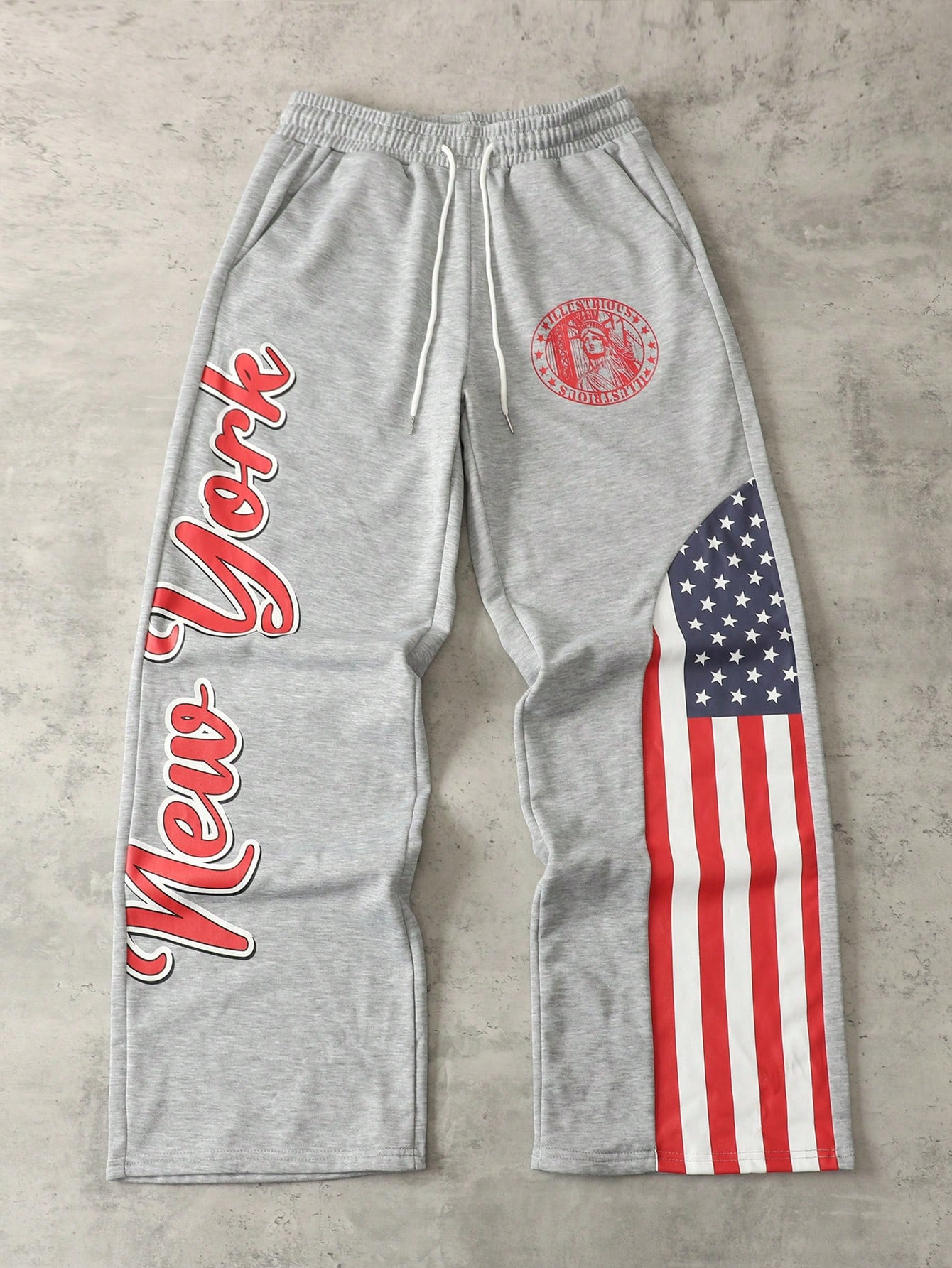 Street Life Pantalon de survêtement ample pour hommes avec imprimé drapeau américain, style de rue rétro