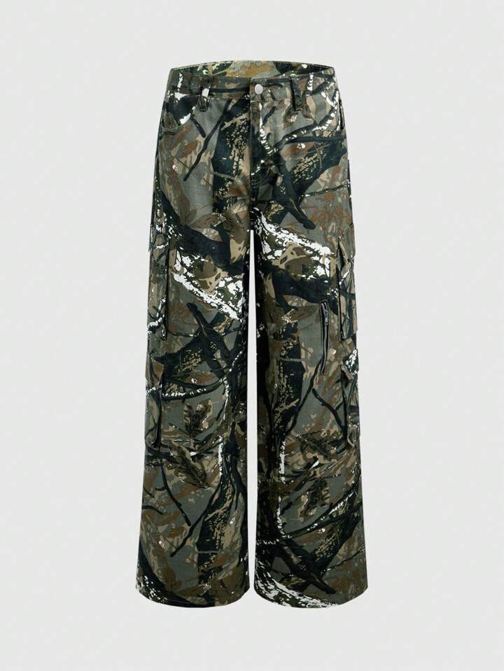 Street Life Jeans amples et lâches à imprimé de branches pour hommes, pour l'école