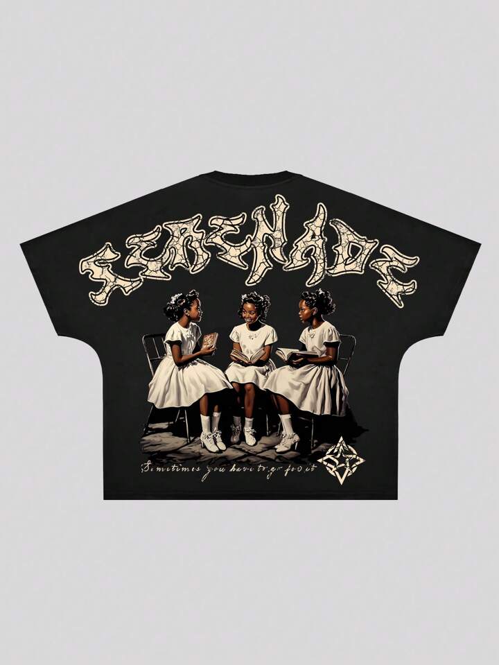 Street Life T-shirt homme ample à court avec slogan et impression de figure