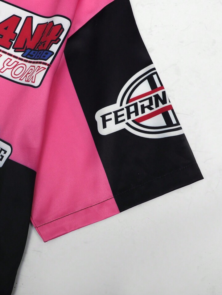 Street Life Chemise à manches courtes décontractée pour hommes avec fermeture à glissière, imprimé lettres, style loose court