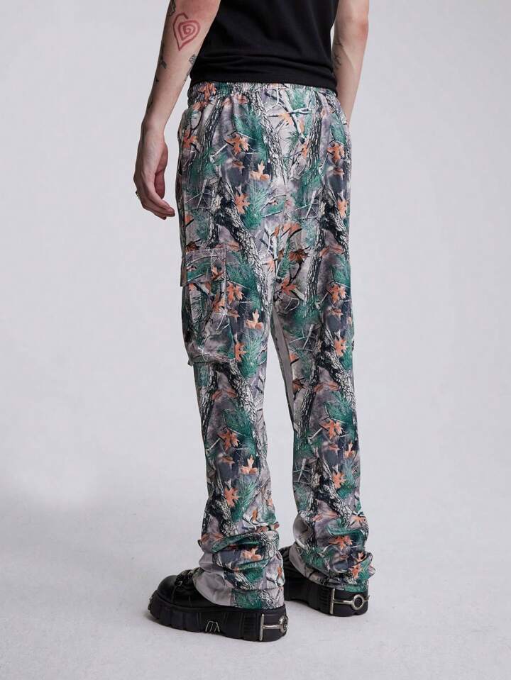 Street Life Pantalon cargo à imprimé de branche d'arbre nue multicouche pour hommes, streetwear