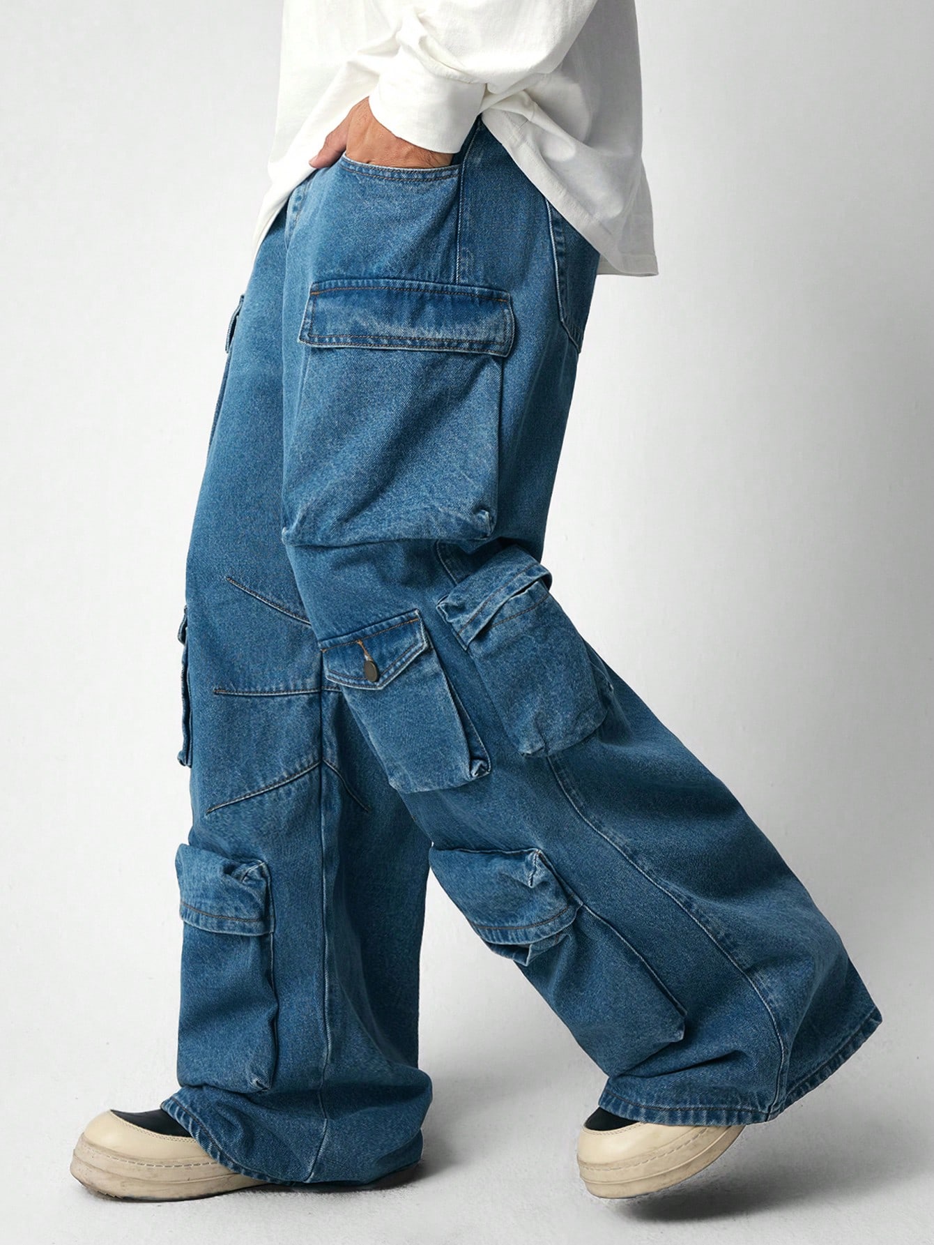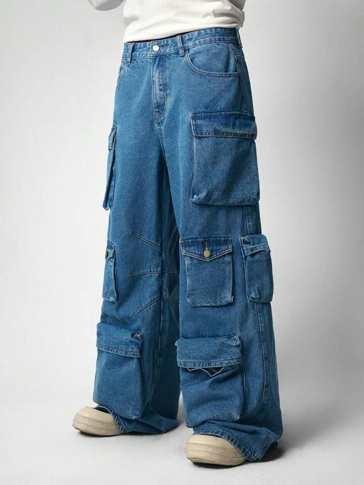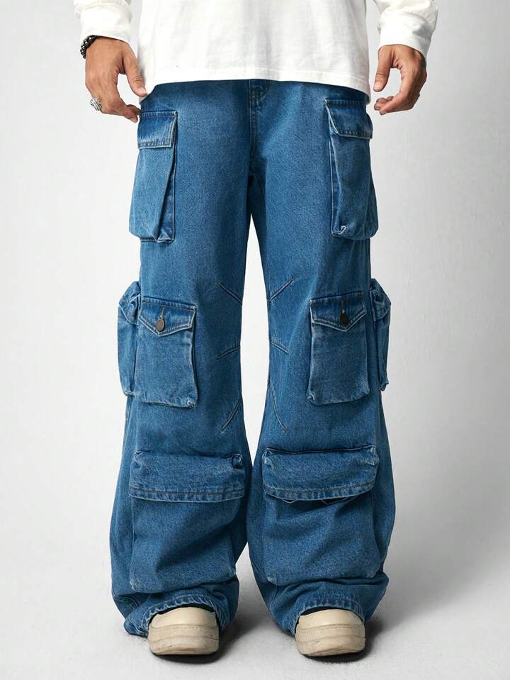 Street Life Jeans amples et confortables à jambe large avec plusieurs poches pour hommes