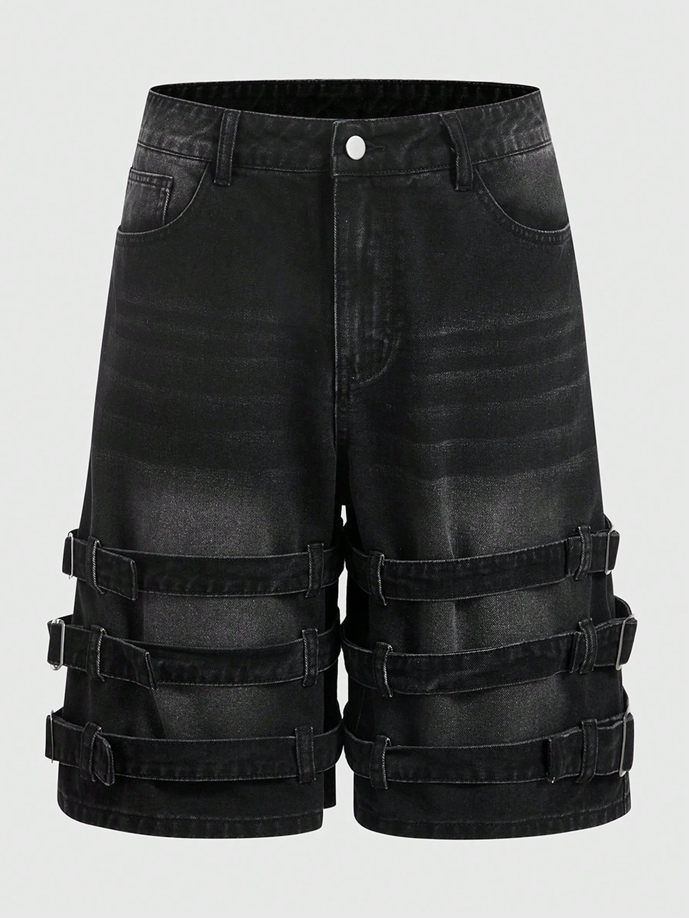 Street Life Shorts en jean amples et décontractés avec poches et multi-sangles pour hommes