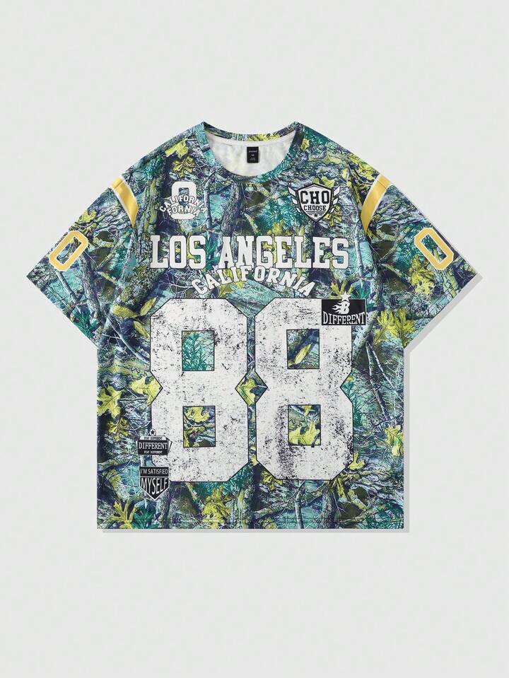 Street Life T-shirt à manches courtes de style camouflage bois sec n° 88 pour hommes, style sport de rue casual pour l'été