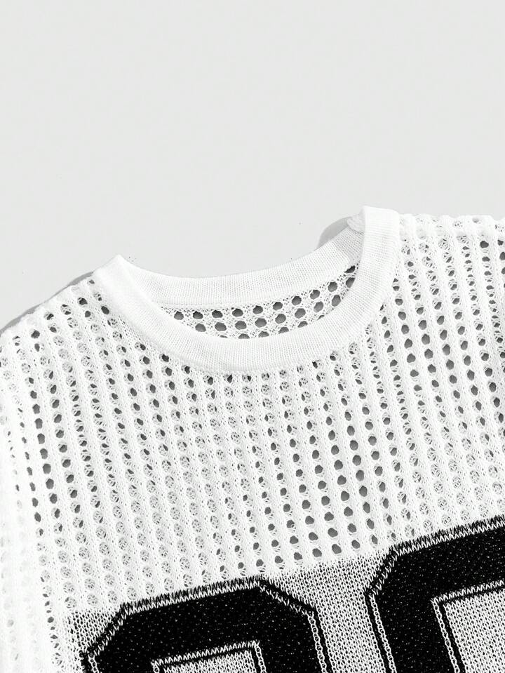 Street Life Top tricoté à manches courtes à col rond avec motif chiffré, style football, effet ajouré pour hommes