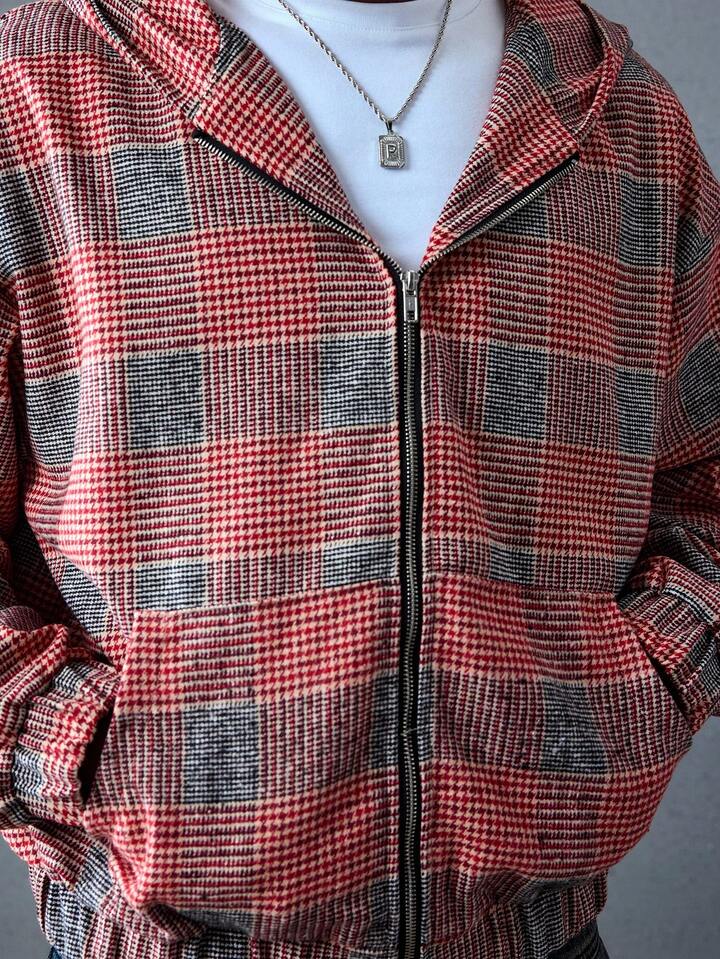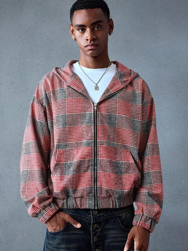 Street Life Veste à capuche à carreaux pour hommes, style ample et court, automne/hiver