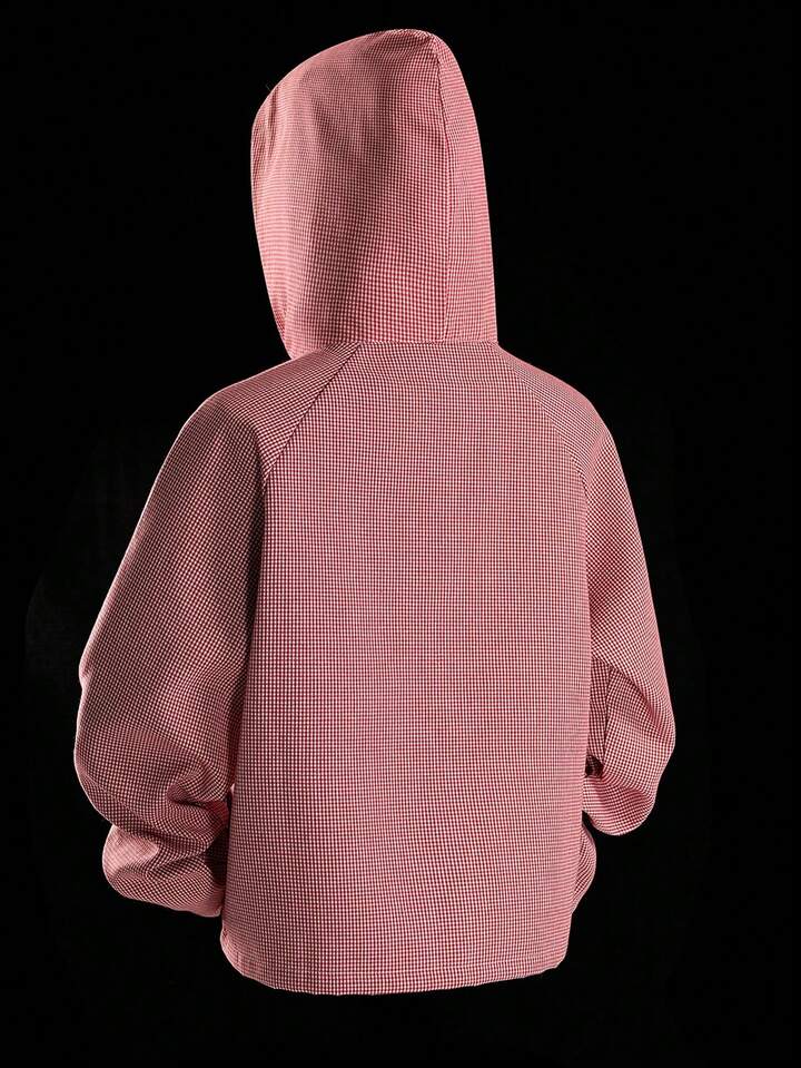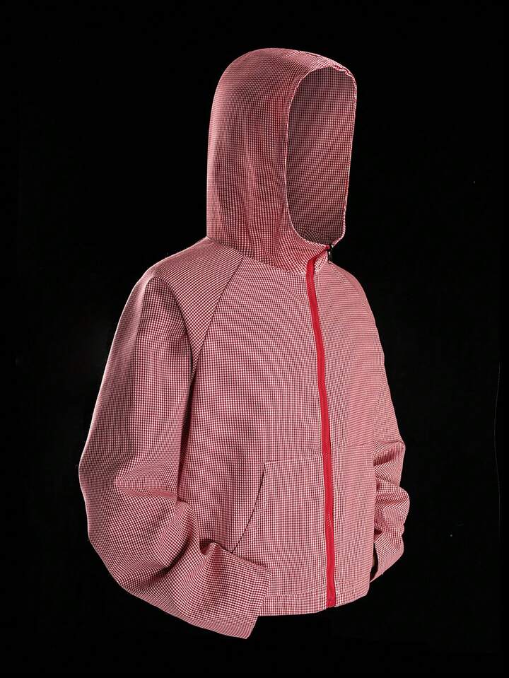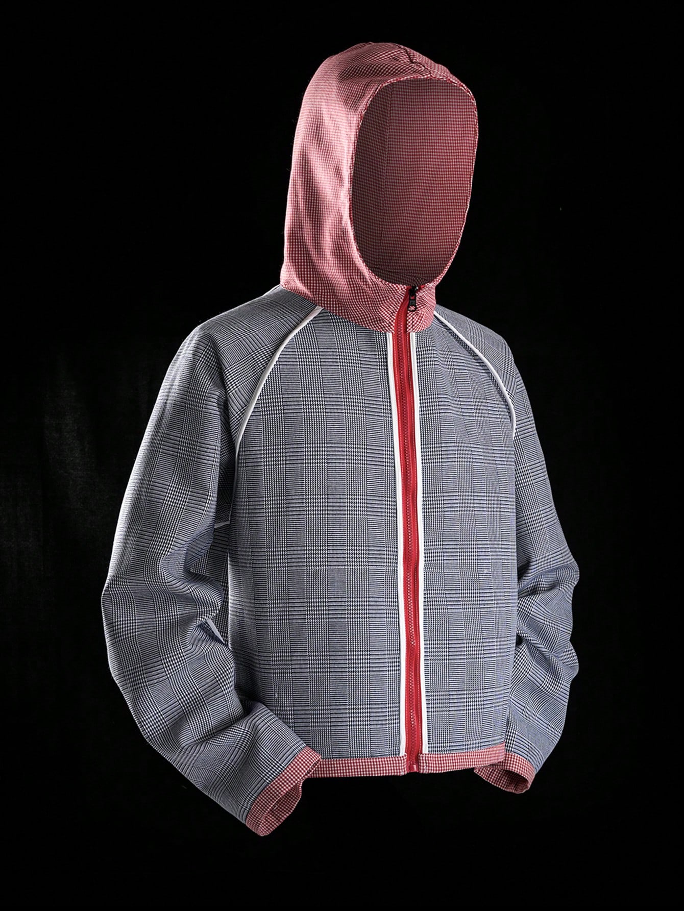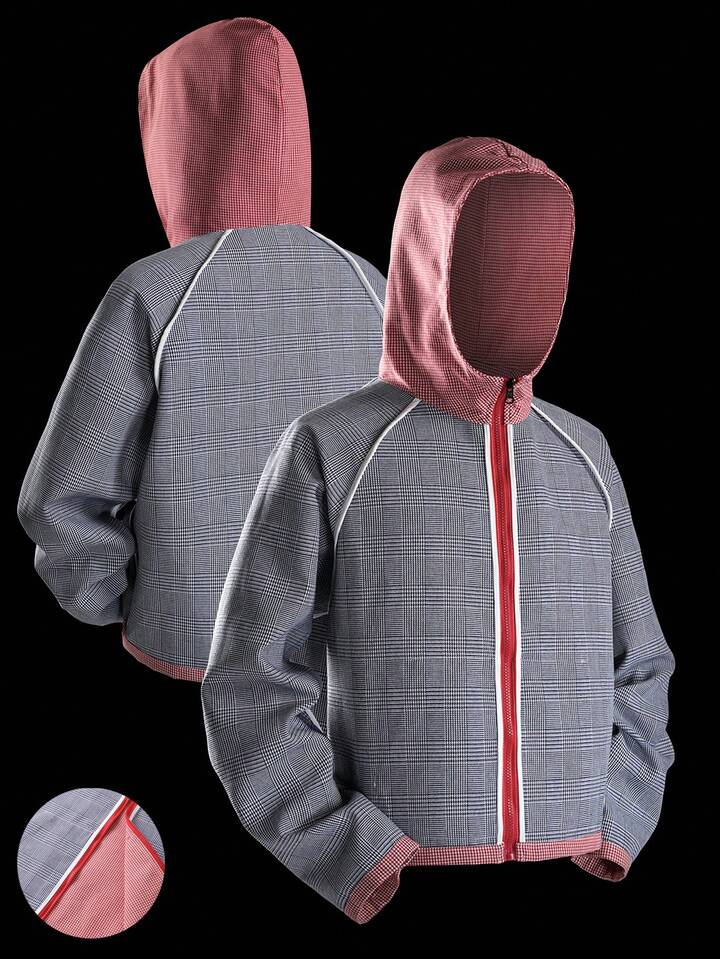 Street Life sweat-shirt à capuche zippé casual à carreaux et patchwork pour hommes