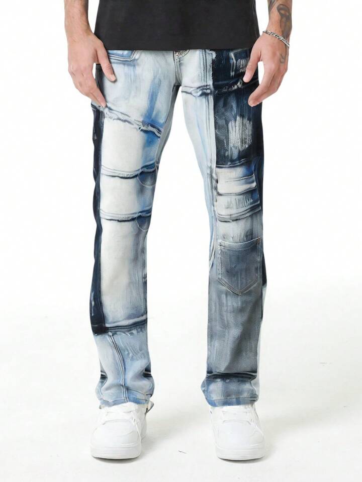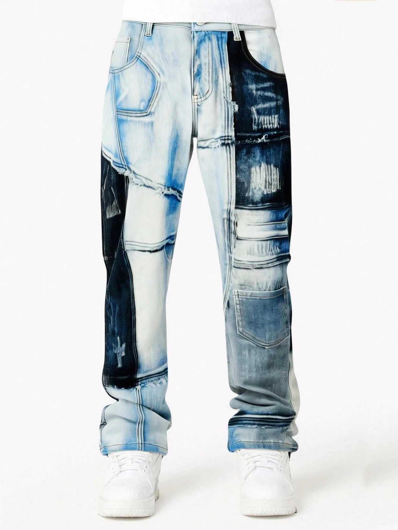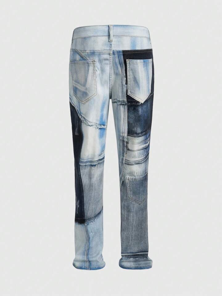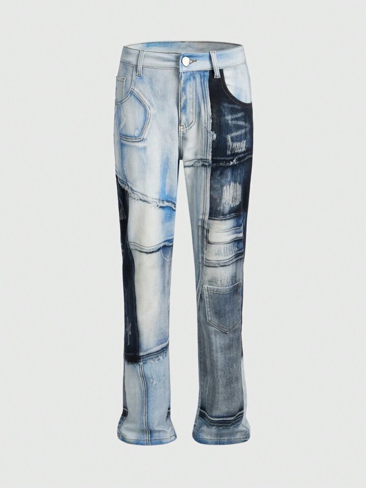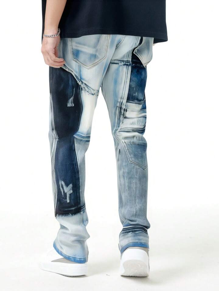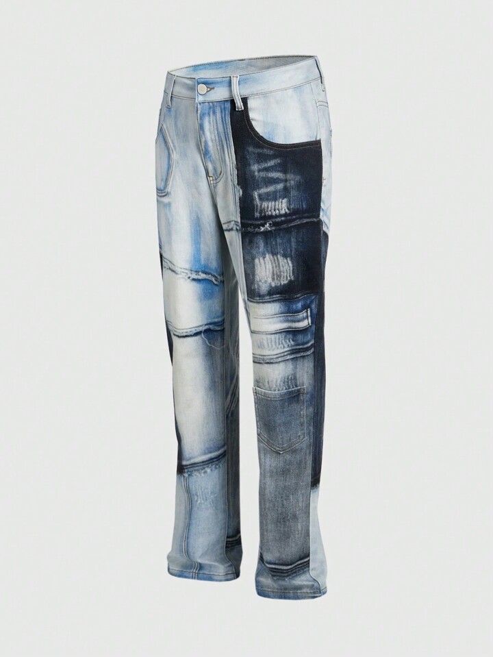 Street Life Jeans de mode casual à jambe droite avec patchwork de poche pour hommes