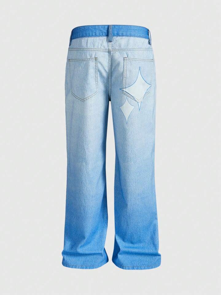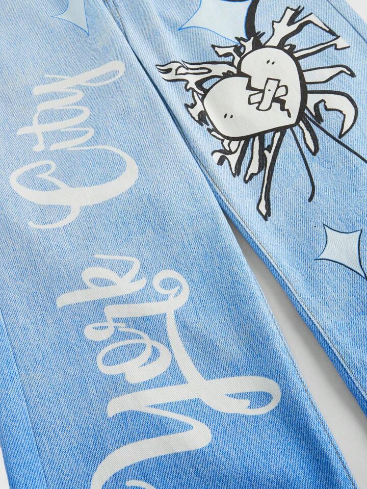 Street Life Jeans décontractés amples à jambes larges avec poche, motif cœur et lettre pour hommes