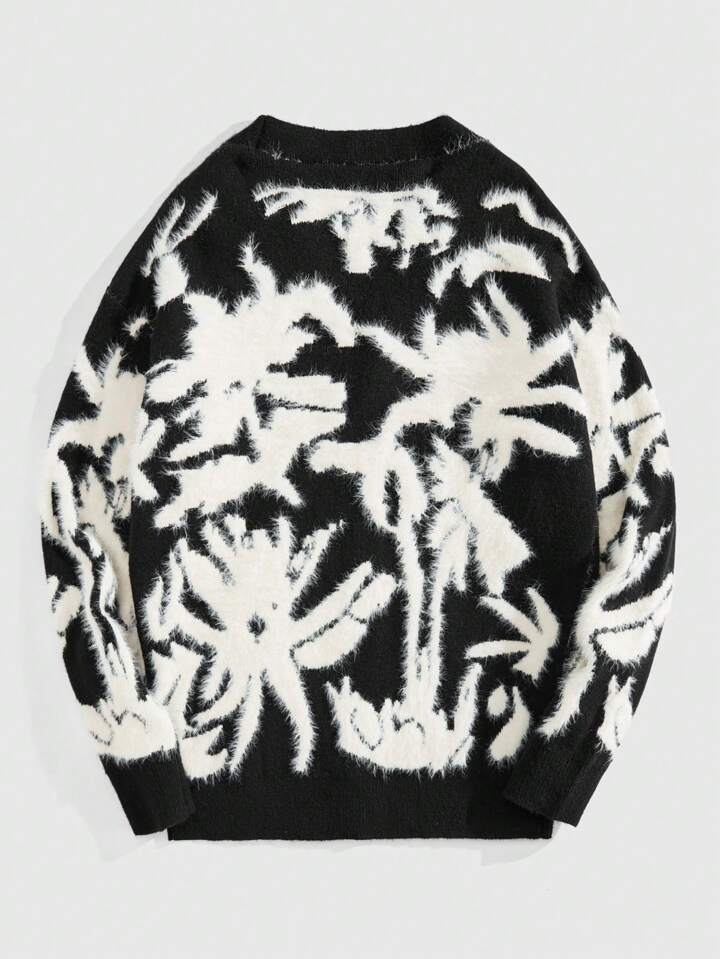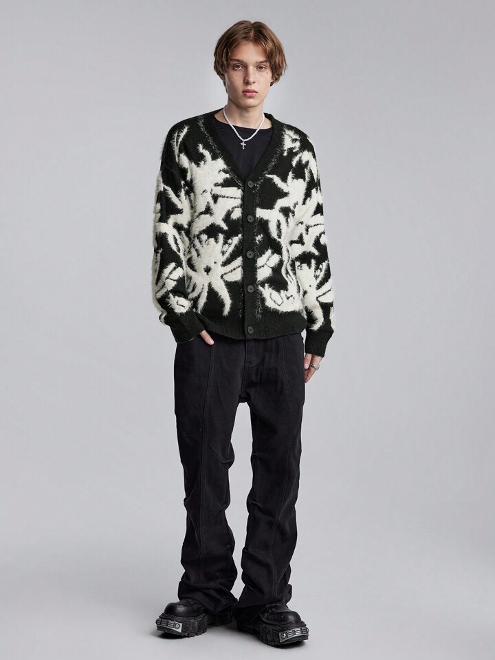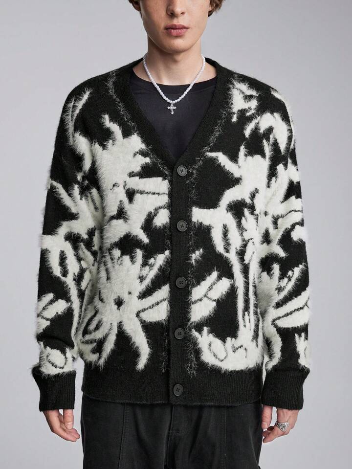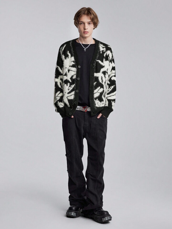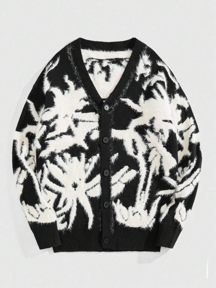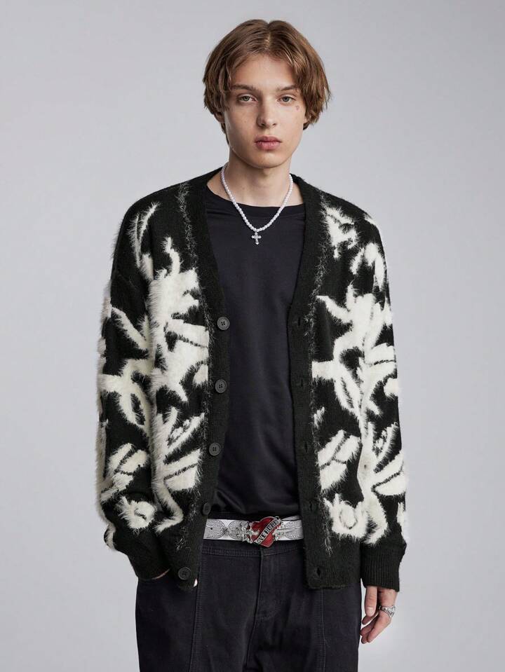 Street Life Cardigan casual en jacquard imprimé à col en V et simple boutonnage pour hommes, convient pour un port quotidien