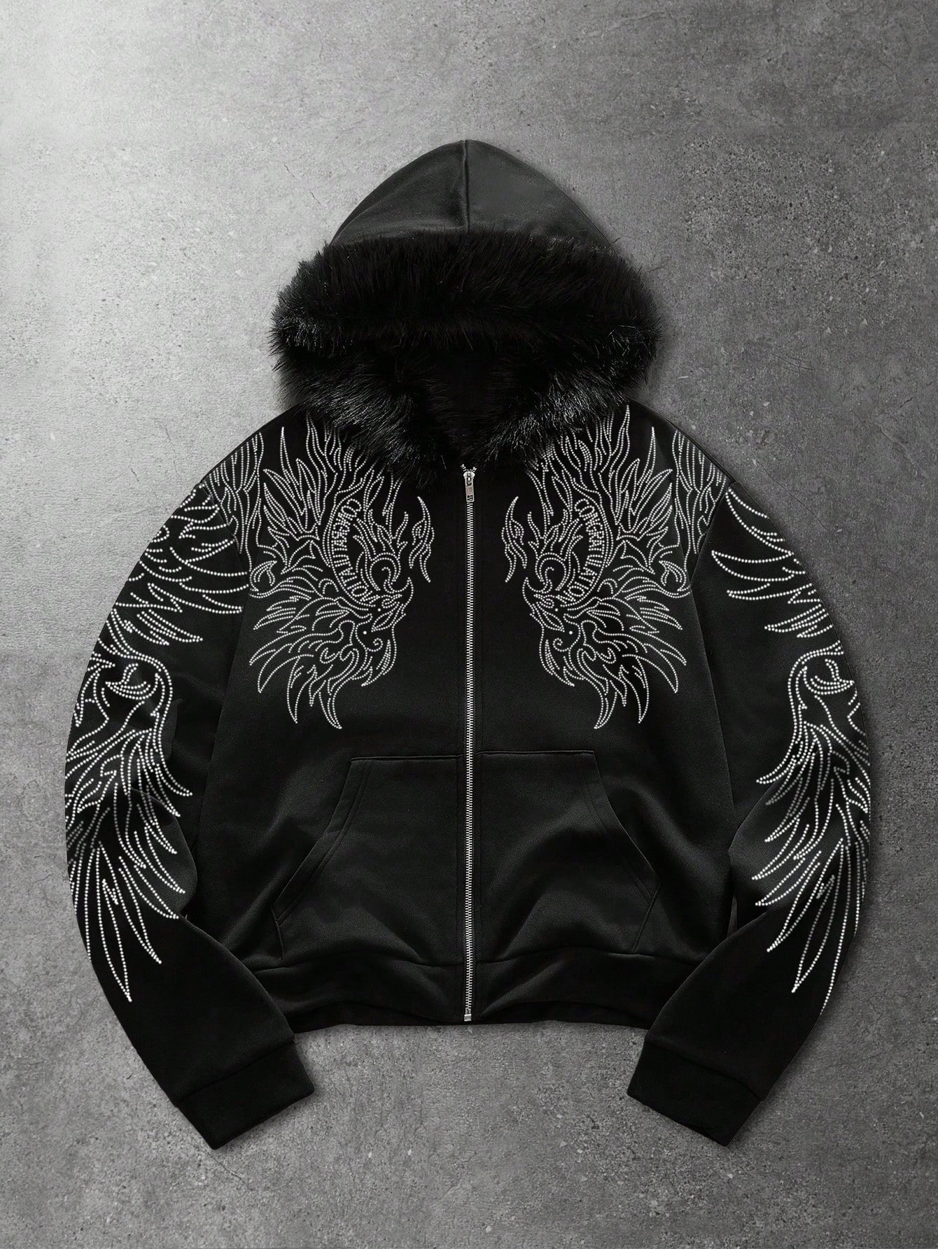 Street Life Sweat-shirt-shirt à capuche zippé à manches longues imprimé pour hommes avec col en fourrure