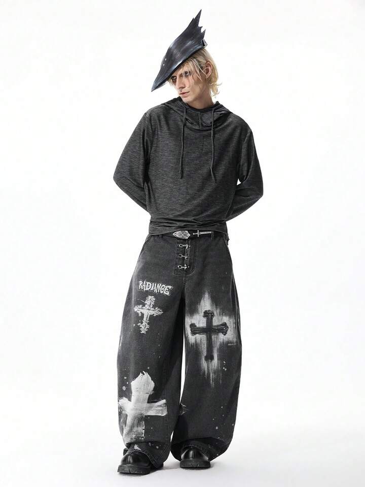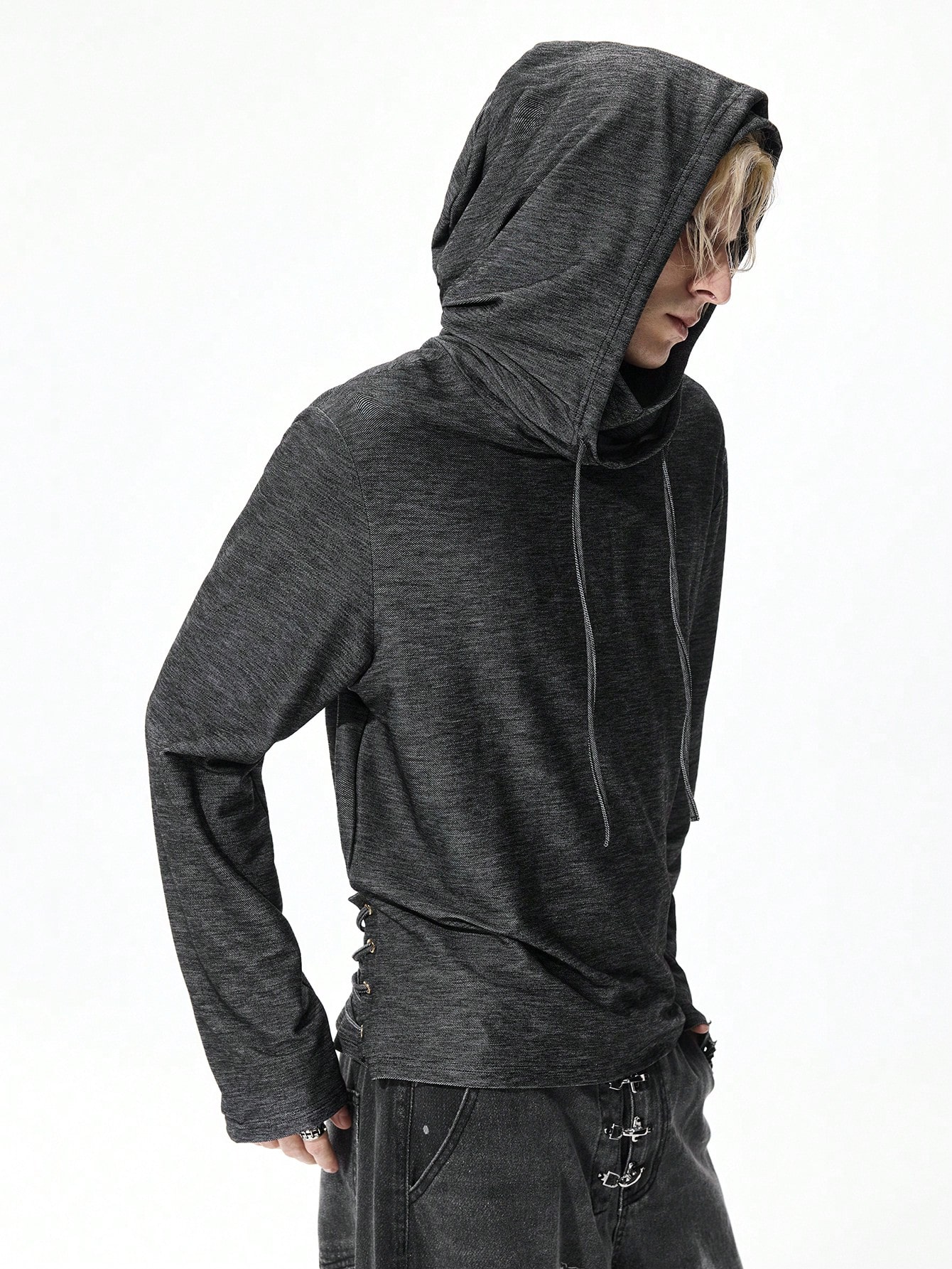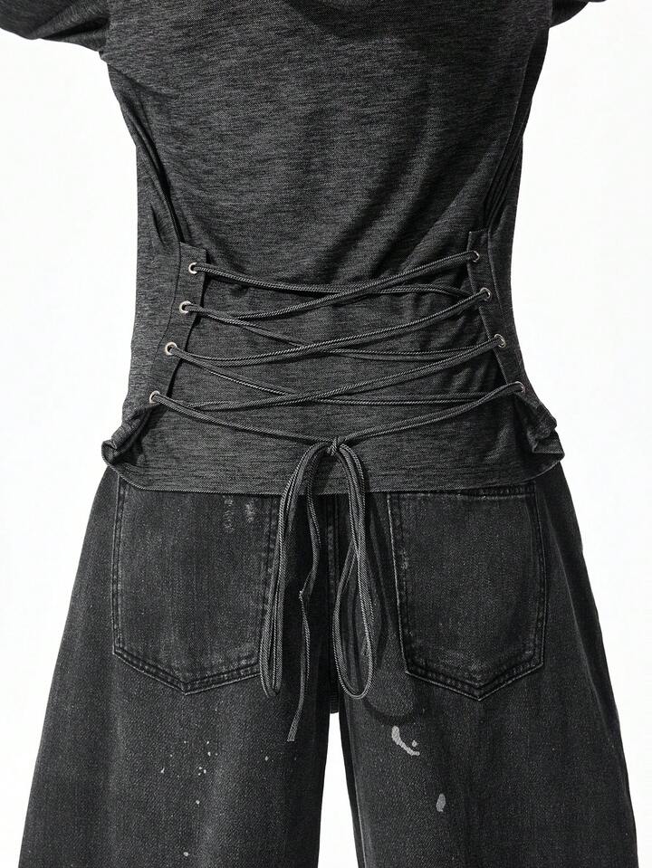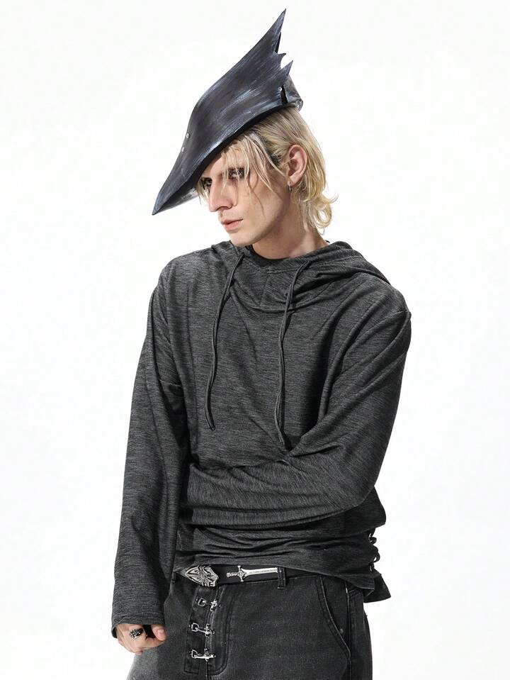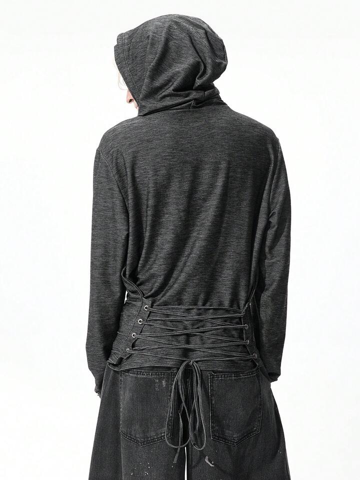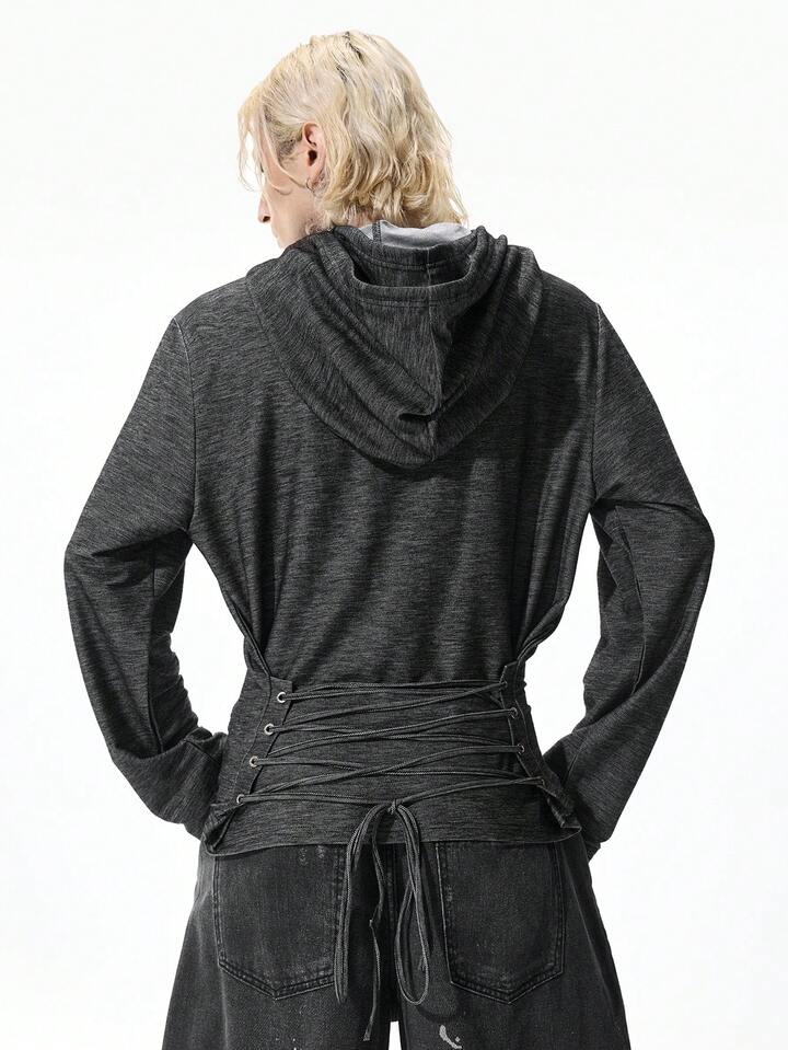 Street Life Tenue de festival de musique punk apocalyptique pour hommes, sweat-shirt à capuche à manches longues slim fit avec design à cordon de serrage et dos nu