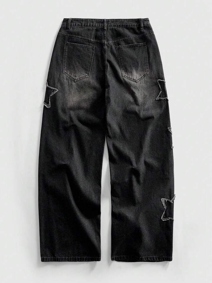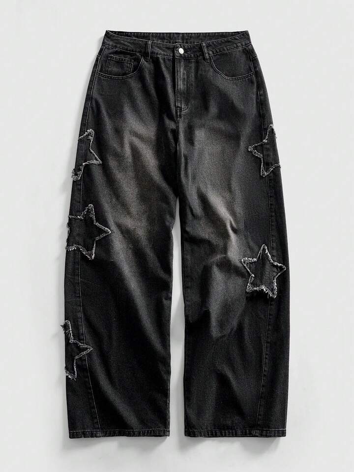 Street Life Jeans en denim ample pour hommes avec broderie d'étoiles