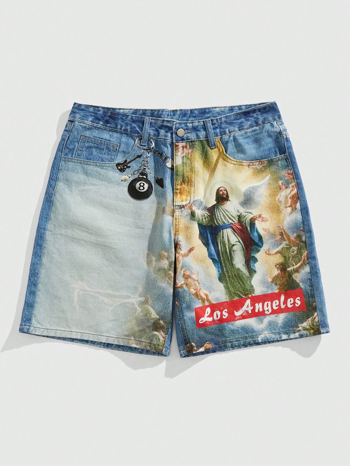 Street Life Short en jean à imprimé graphique pour hommes, style Y2K, cadeau pour petit ami