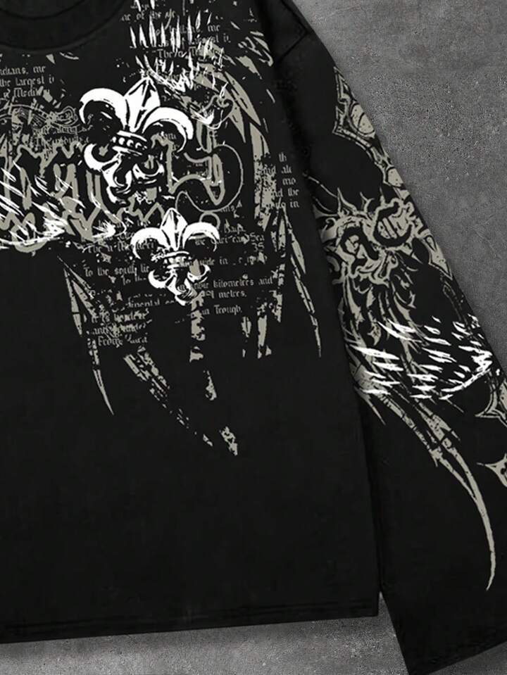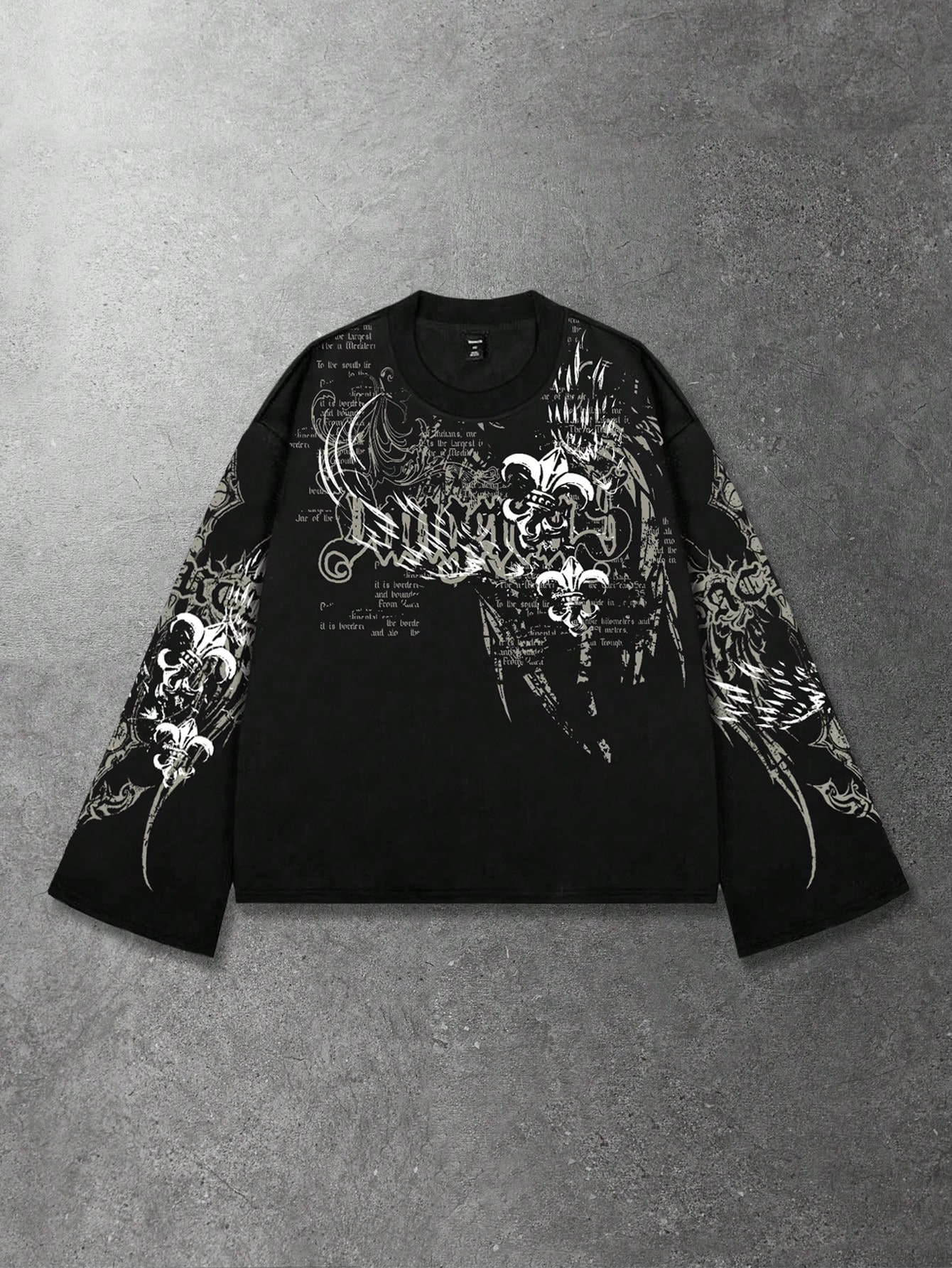 Street Life T-shirt à manches longues ample et court avec imprimé graphique rétro pour hommes