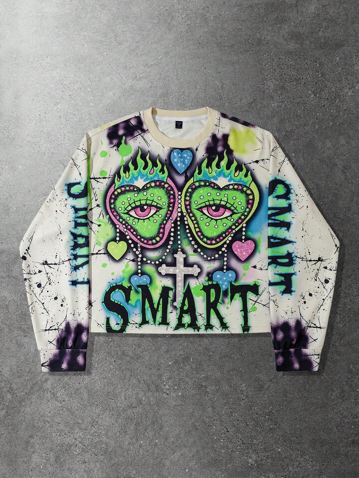 Street Life T-shirt ample à manches longues et coupe courte avec imprimé graphique rétro pour hommes