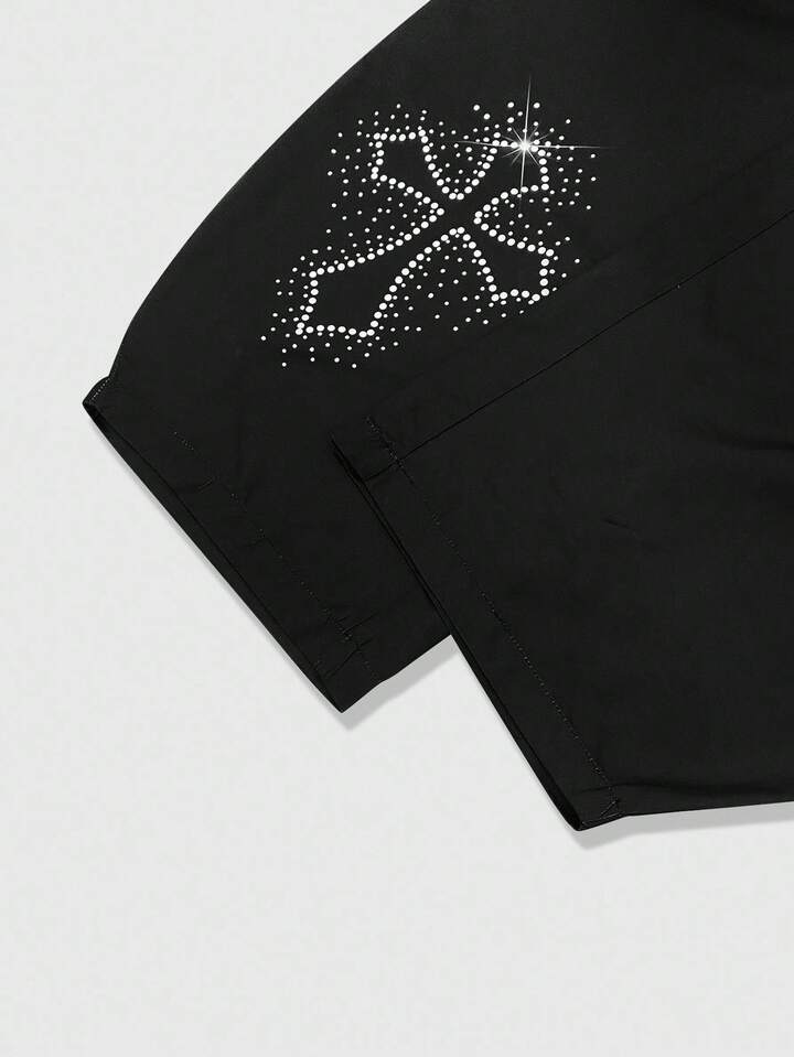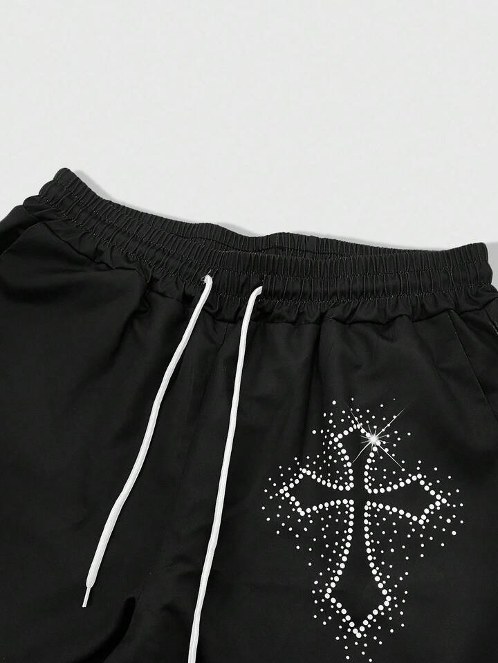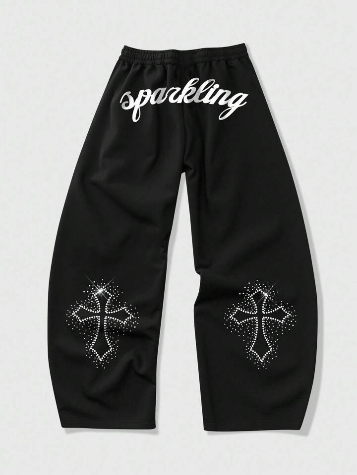 Street Life Pantalon casual ample à taille élastique avec croix et strass pour hommes, automne