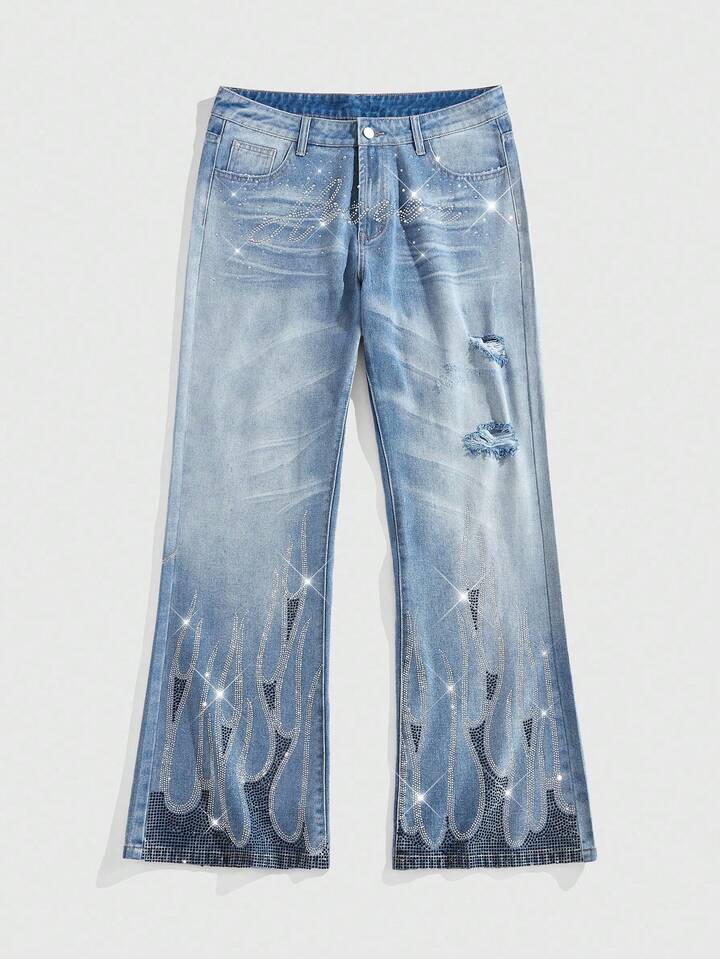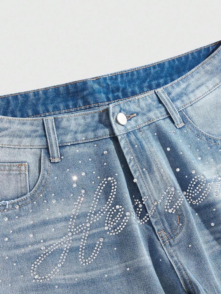Street Life Jeans en denim ornés de strass pour hommes, convenant pour un port quotidien, printemps/été