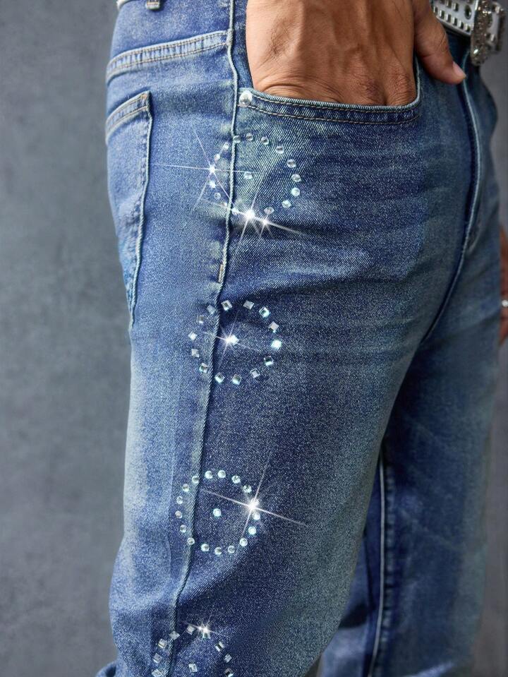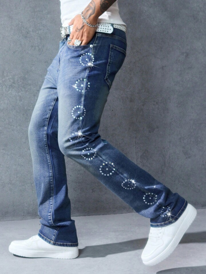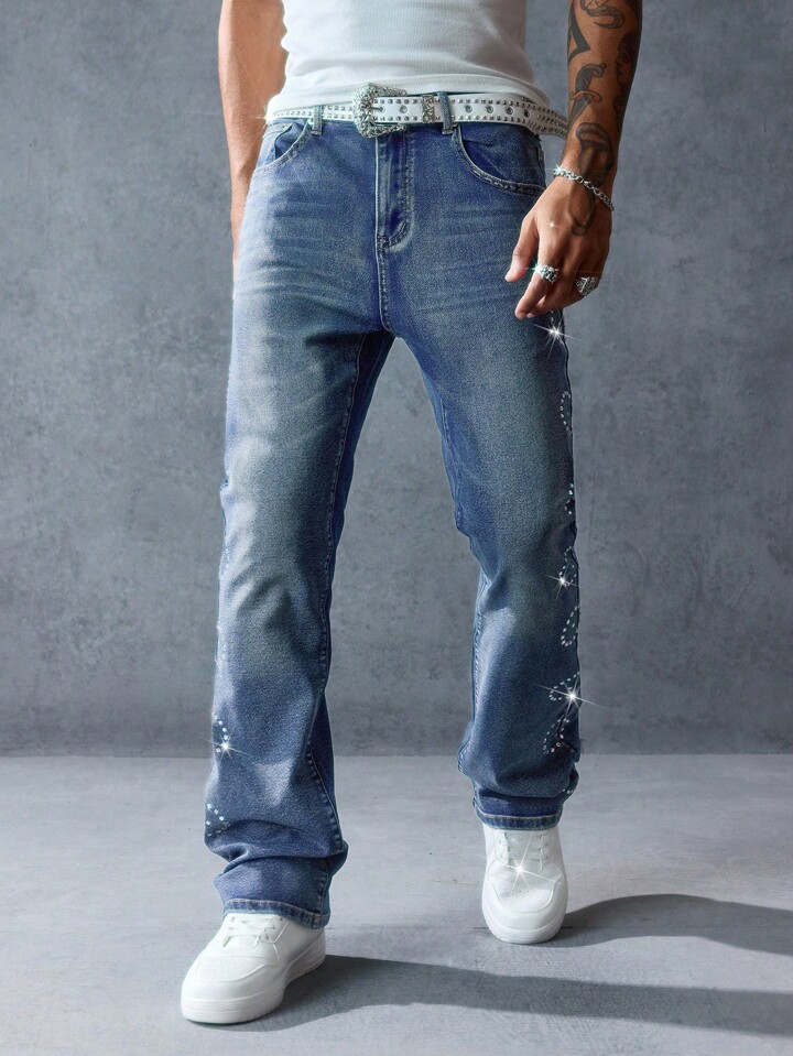 Street Life Jeans décontractés évasés avec poche ornée de strass pour hommes