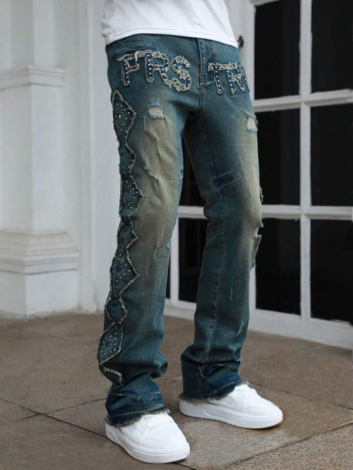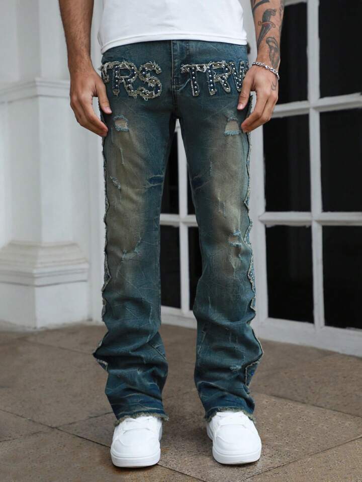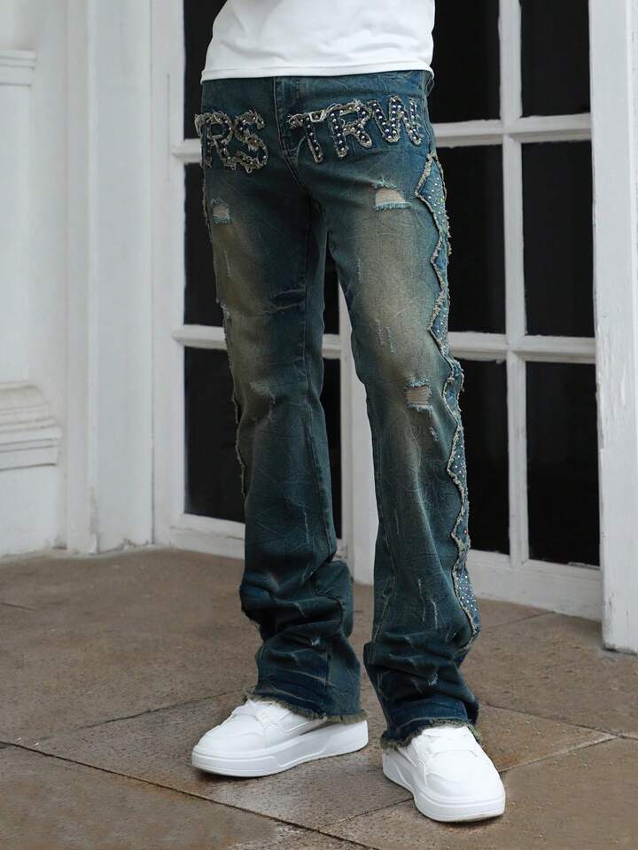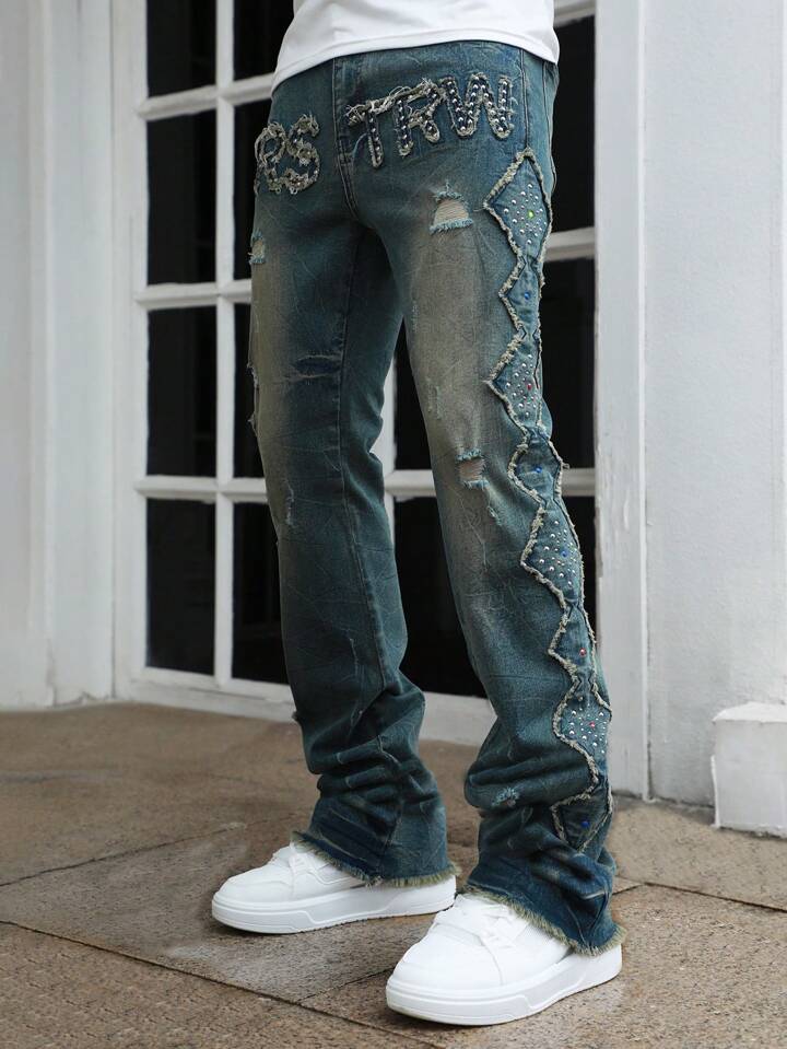 Street Life Jeans évasés à application de rivets en couches pour hommes