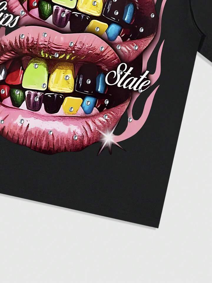 Street Life Top décontracté à col rond et manches courtes avec imprimé lèvres pour hommes, tenue minimaliste pour un port quotidien