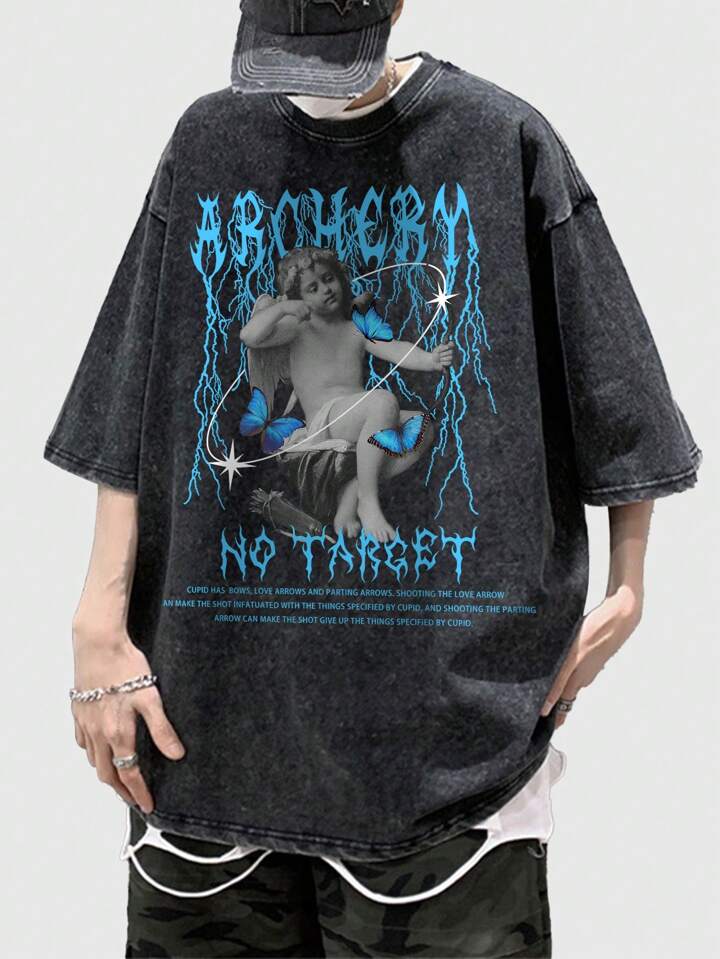 Street Life T-shirt col rond à manches courtes pour hommes avec imprimé graphique, école