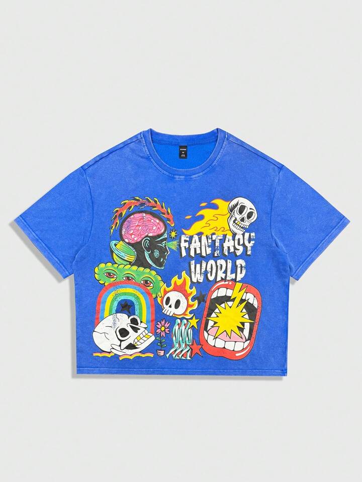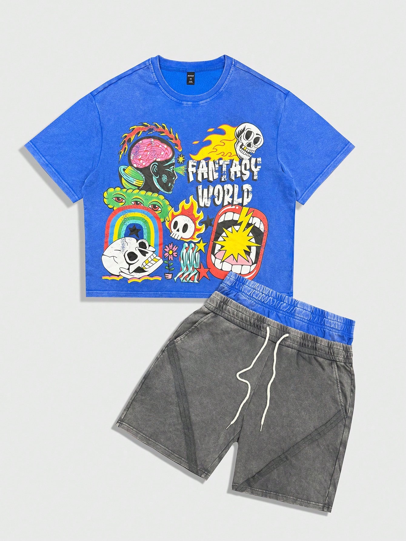 Street Life Ensemble t-shirt à manches courtes avec imprimé squelette et dessin animé et short à cordon de serrage contrastant, Halloween