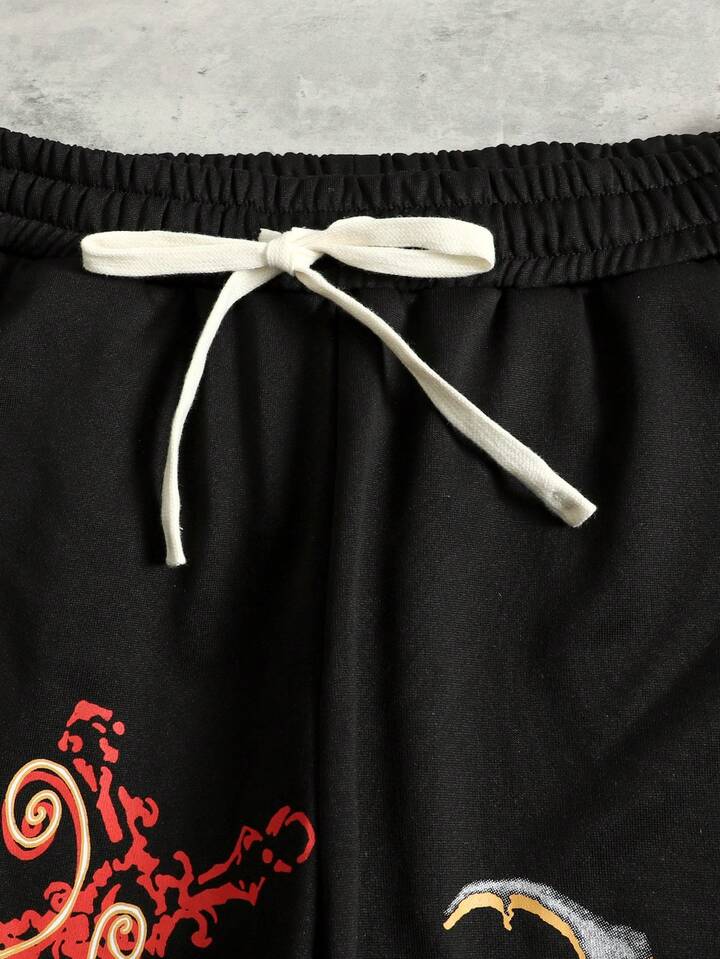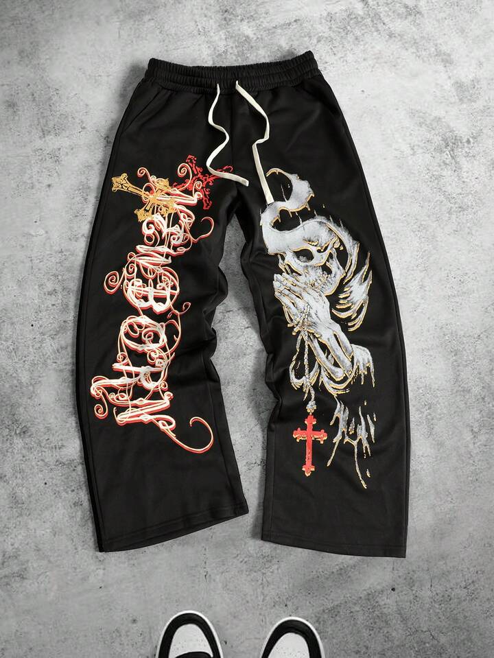 Street Life Pantalon de survêtement ample à taille coulissante avec imprimé crâne pour hommes