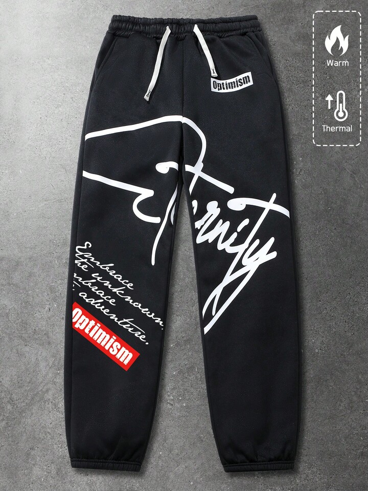 Street Life Pantalon de survêtement avec imprimé slogan pour hommes, convient pour un port quotidien, printemps/été