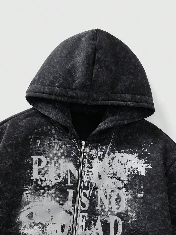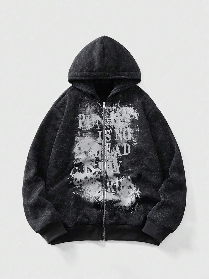 Street Life Sweat-shirt à capuche zippé avec imprimé slogan pour hommes