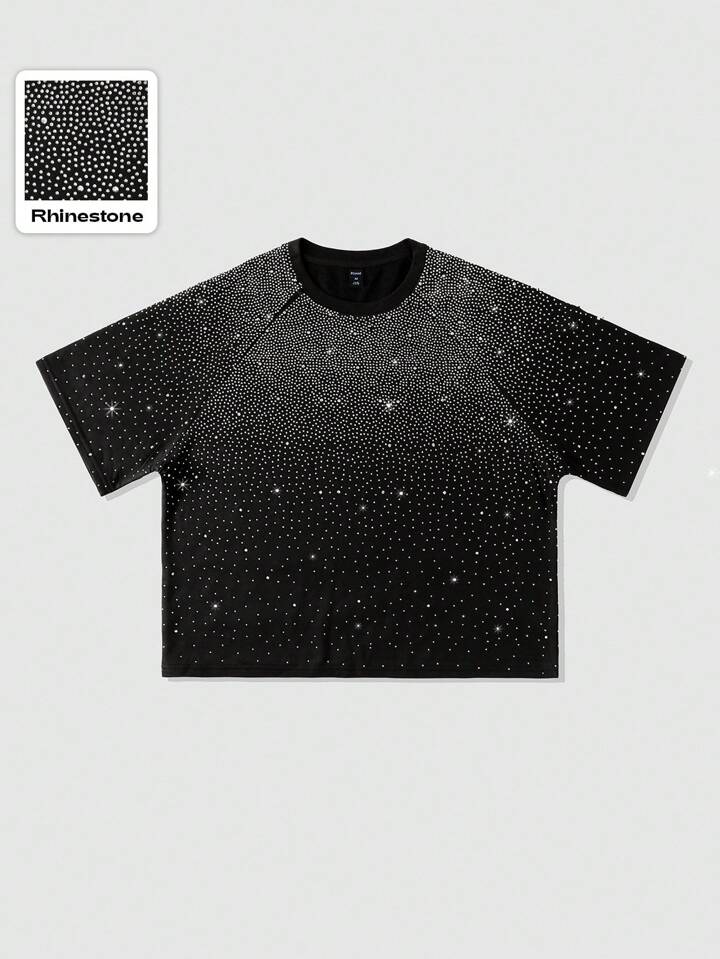 Street Life T-shirt à manches courtes pour hommes avec décoration de diamants scintillants, style ample et court