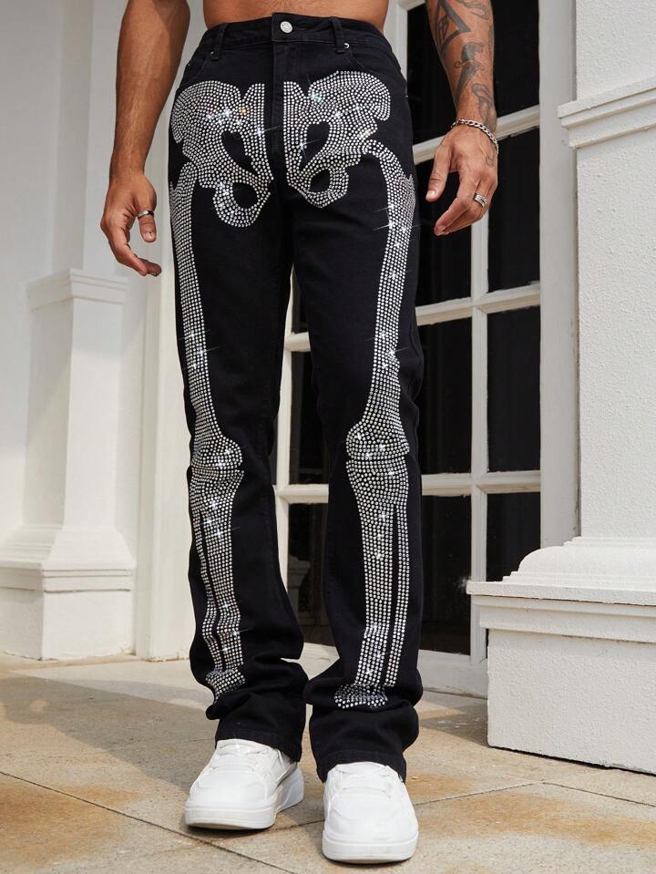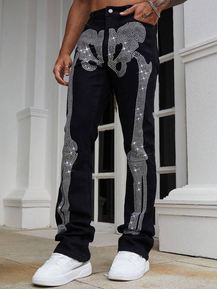 Street Life Jeans évasés pour hommes avec motif diamant scintillant