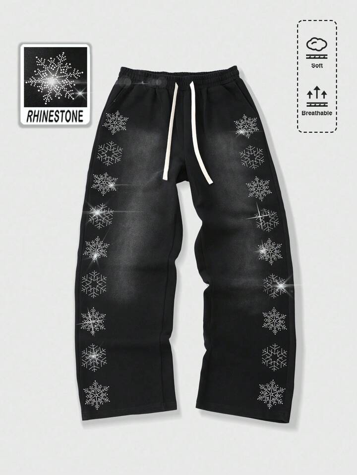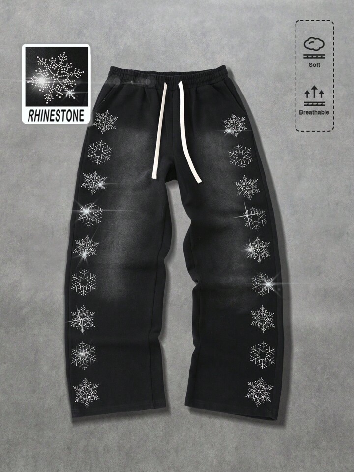 Street Life Pantalon de survêtement ample et brillant avec diamants pour hommes
