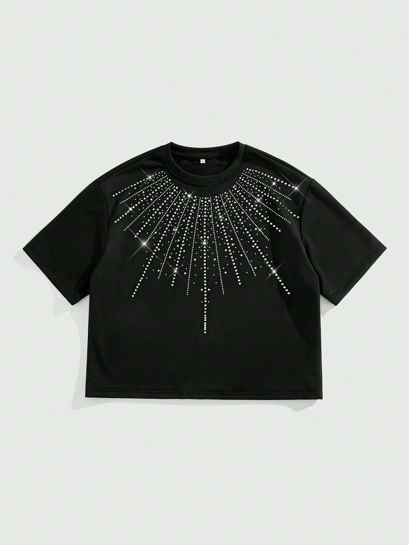 Street Life T-shirt ample à manches courtes pour homme avec strass étincelants