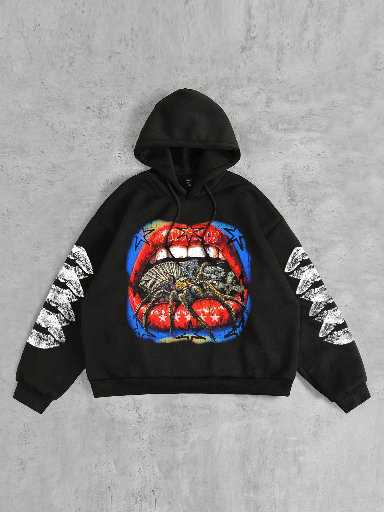 Street Life sweat-shirt à capuche décontracté à manches longues avec imprimé lèvres d'araignée pour hommes, automne/hiver