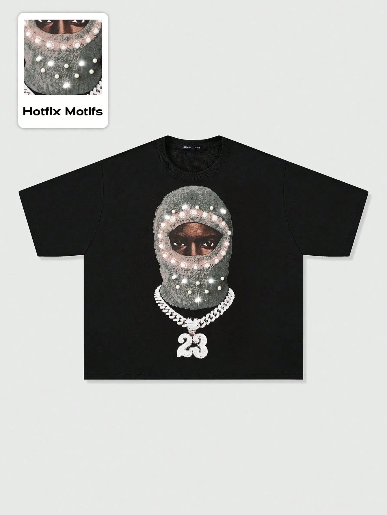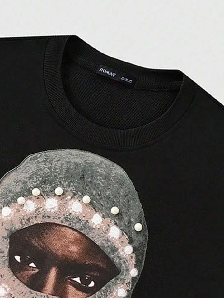 Street Life T-shirt ample à manches courtes pour hommes avec ornements de perles 3D