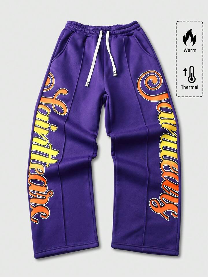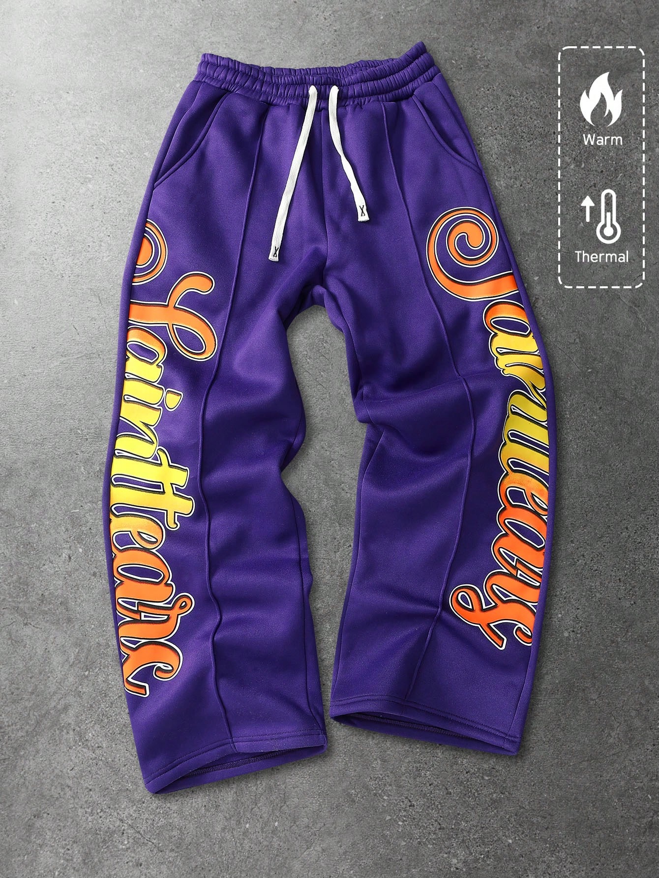 Street Life Pantalon de survêtement droit à imprimé graphique américain anglais décontracté pour homme, automne/hiver