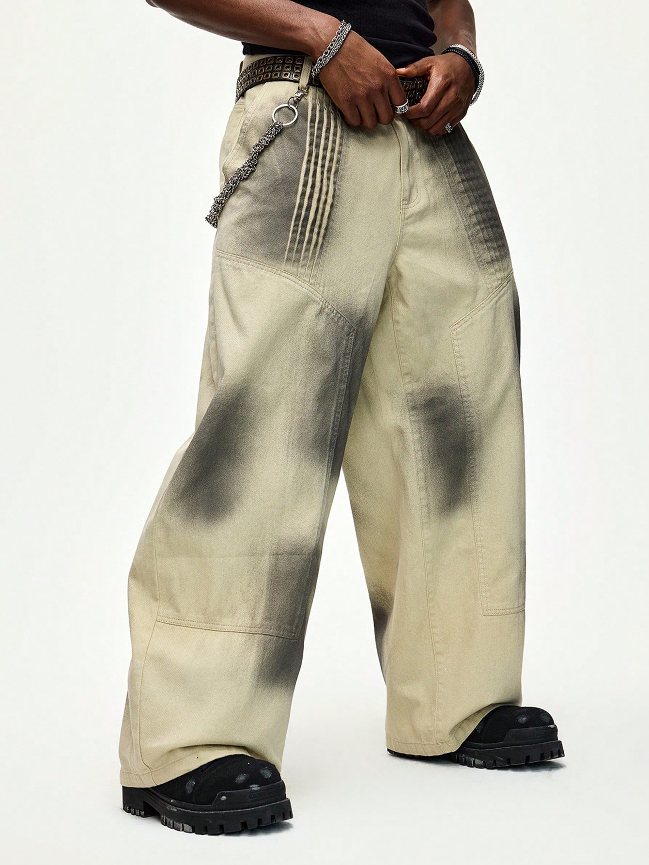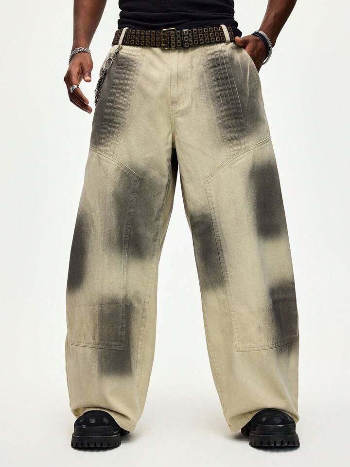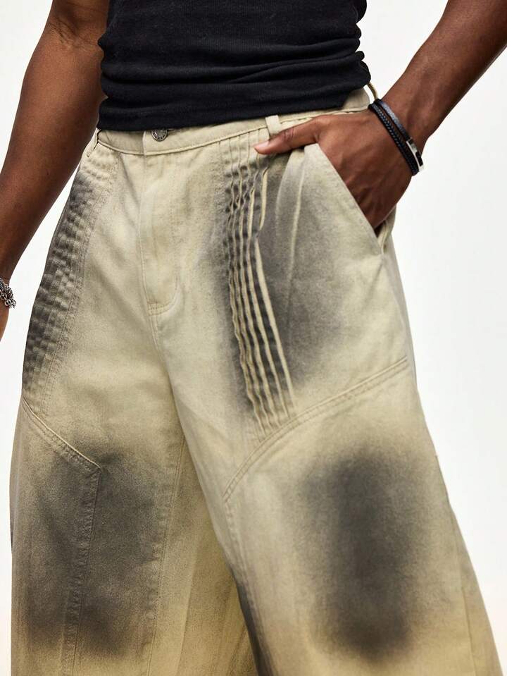 Street Life Pantalon en jean délavé style barillet mode de rue pour hommes