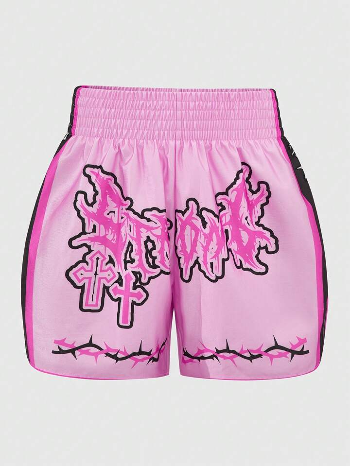 Street Life Short de sport pour hommes avec imprimé lettres et de boxe, convient pour un usage quotidien, printemps/été