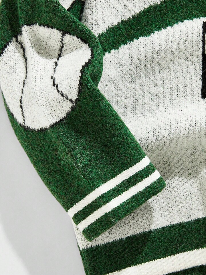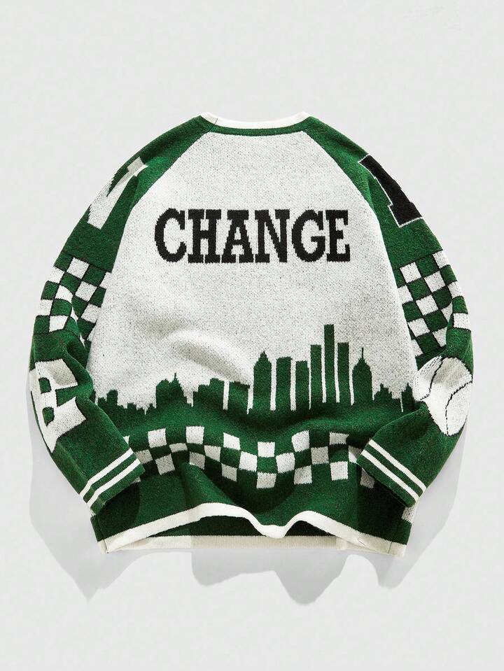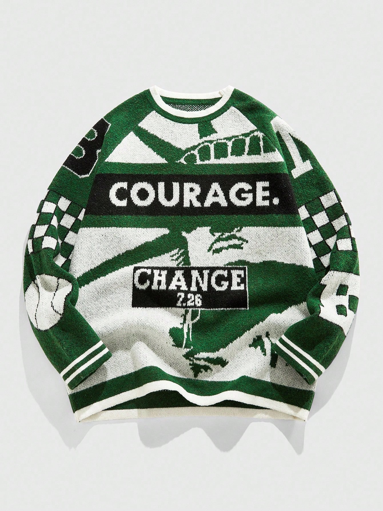Street Life Pull tricoté à motif jacquard avec lettres et chiffres, style urbain, automne-hiver