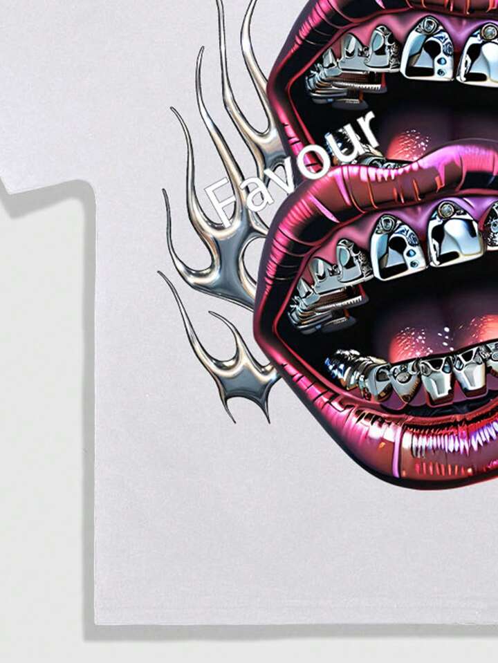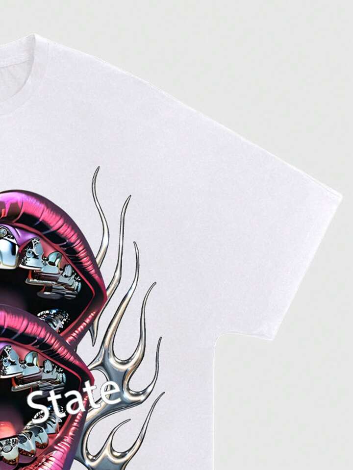 Street Life T-shirt casual à col rond et manches courtes pour homme, imprimé lèvres, pour un port quotidien