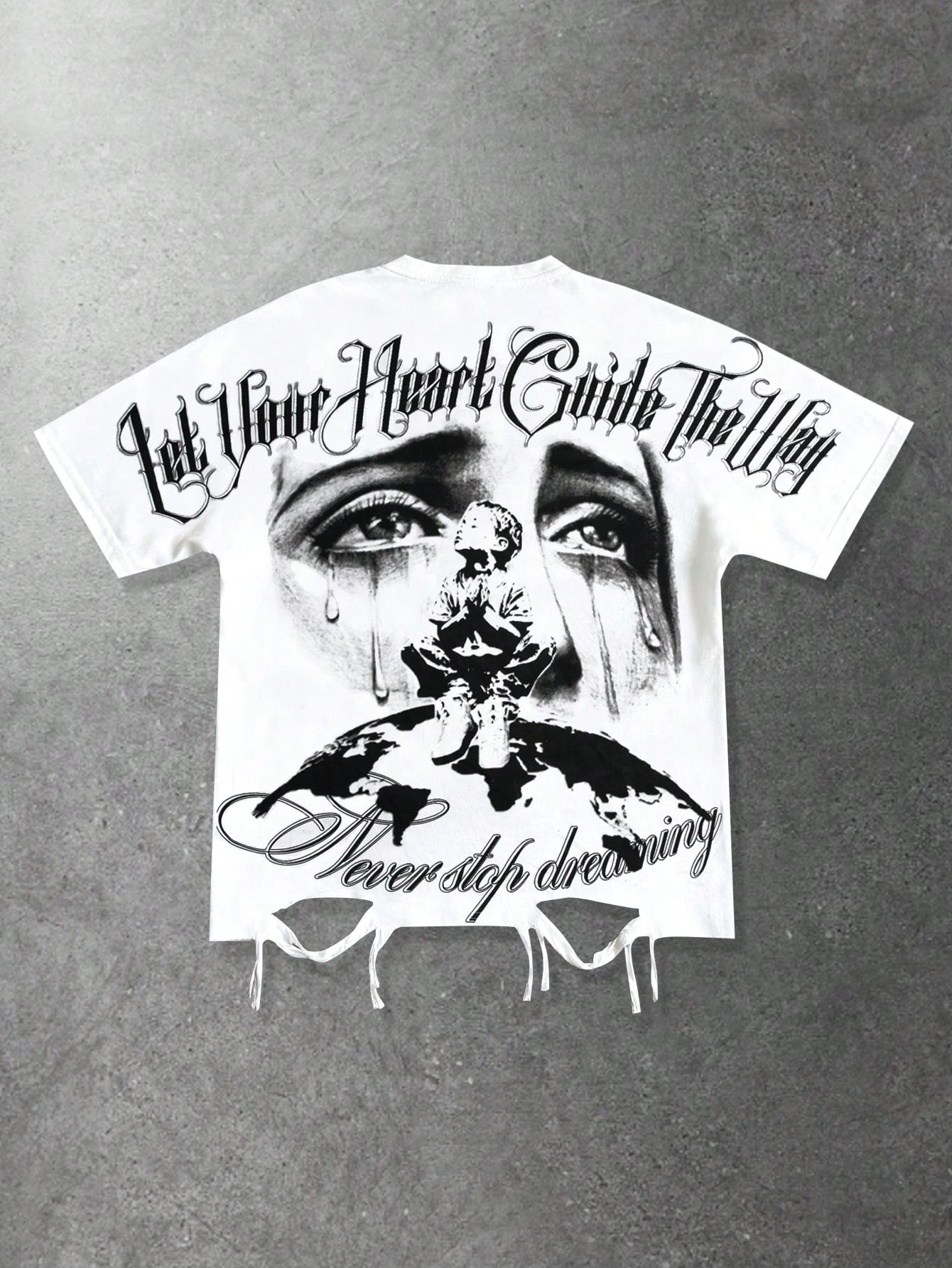 Street Life T-shirt graphique à manches chauve-souris pour homme, style de rue, convient pour le port quotidien, printemps/été