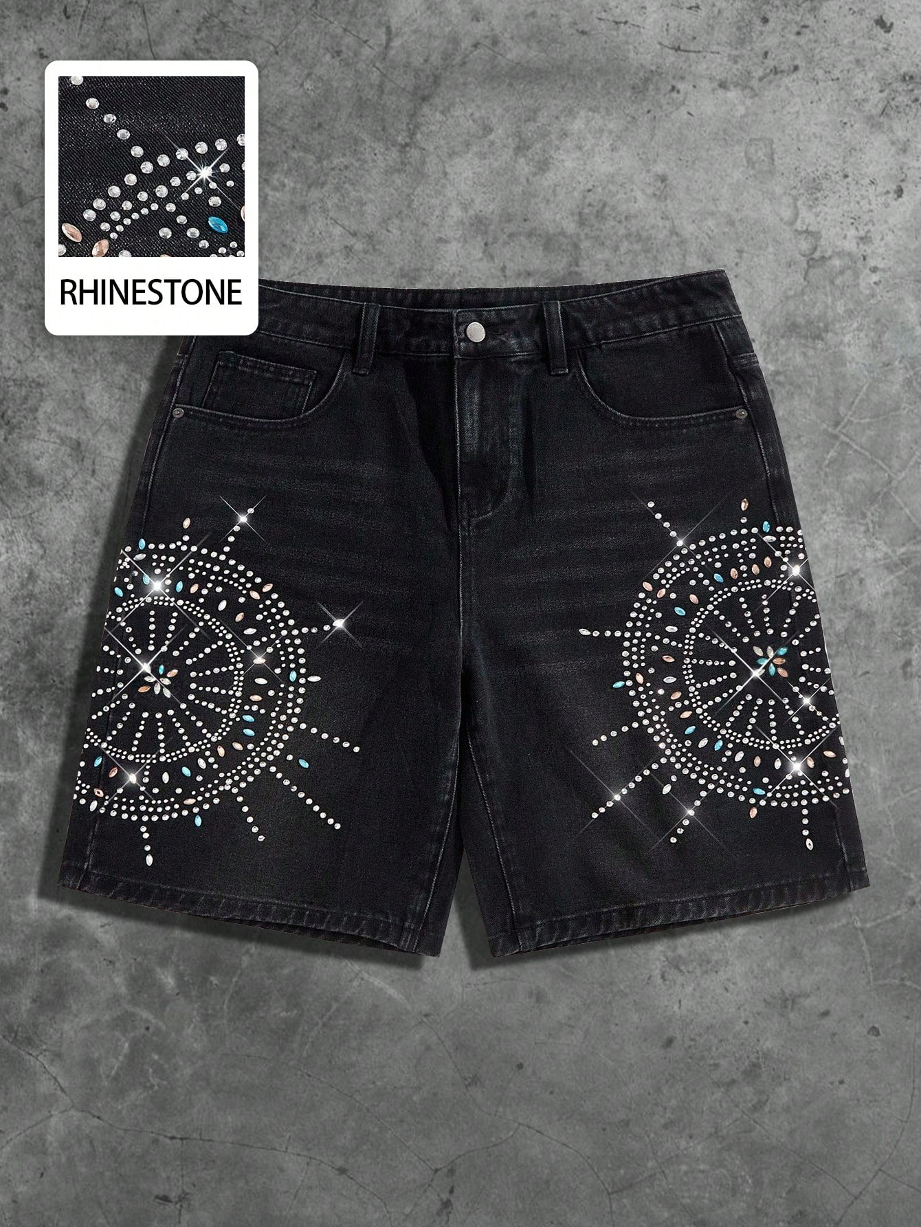 Street Life Bermuda en jean avec décorations de strass, style de rue pour homme, convient pour le printemps/été