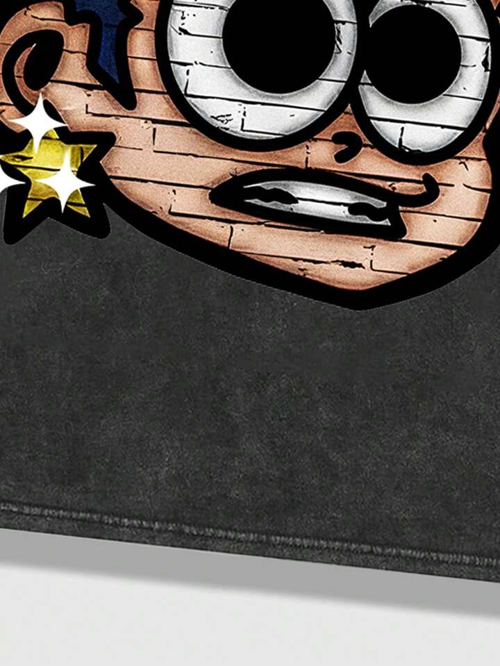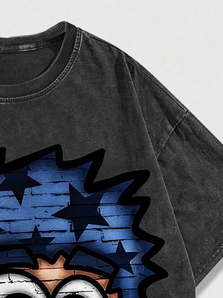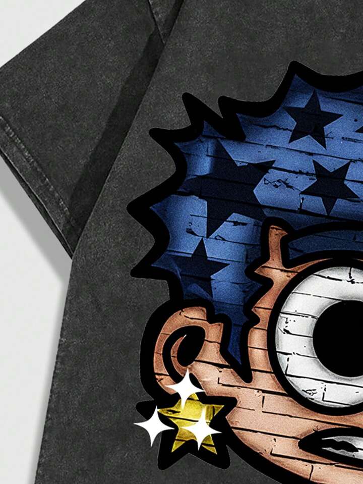 Street Life T-shirt casual à manches courtes à col rond imprimé personnage de dessin animé d'été pour hommes, école