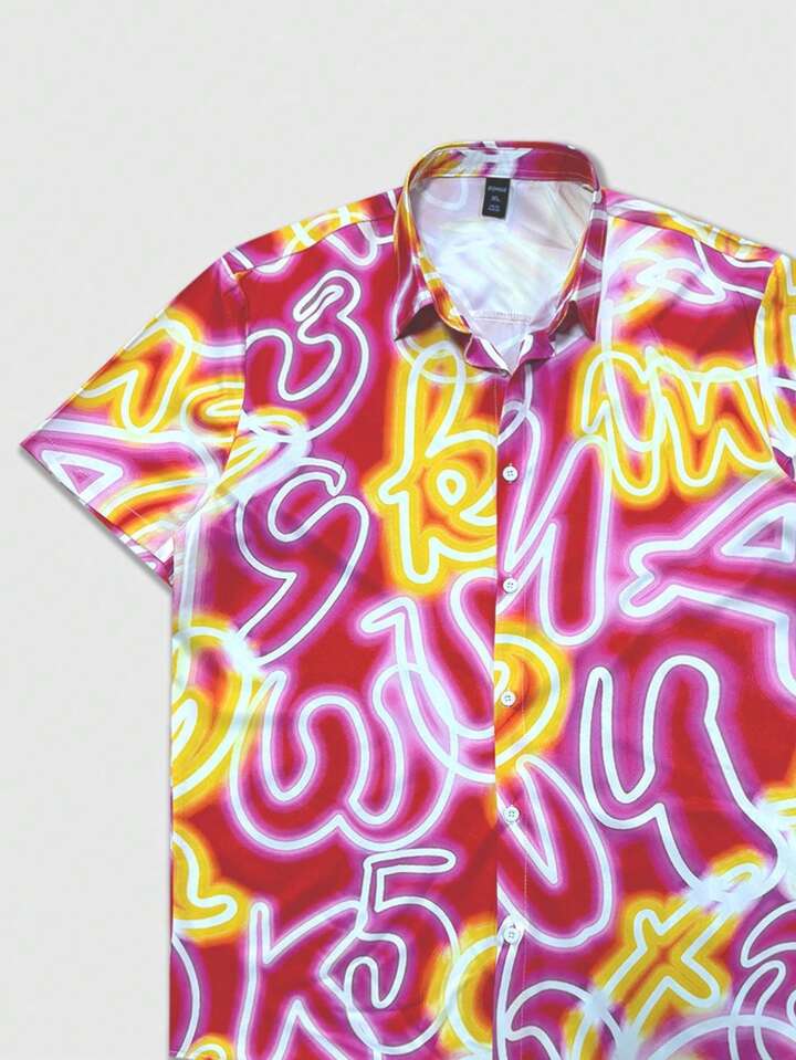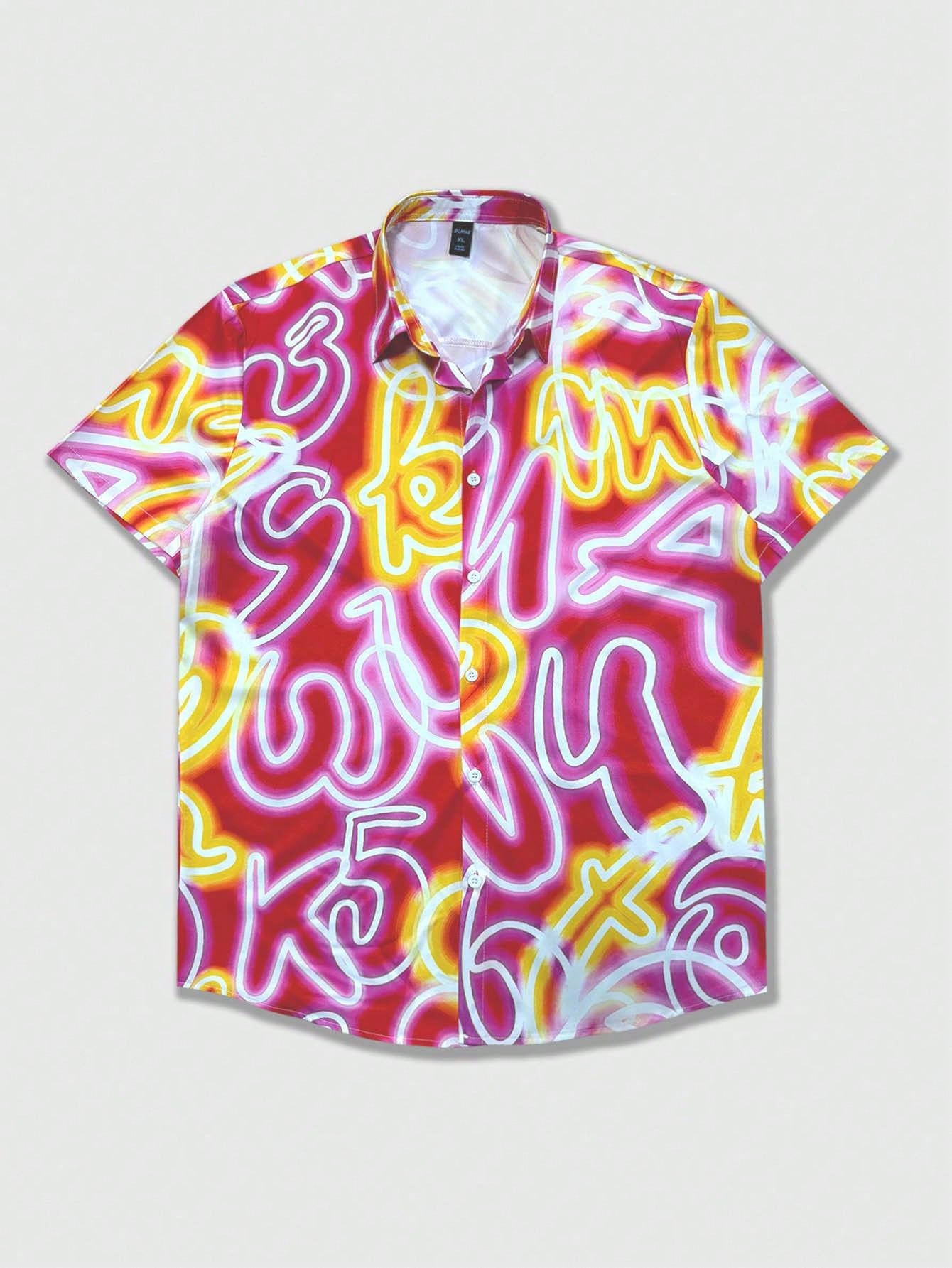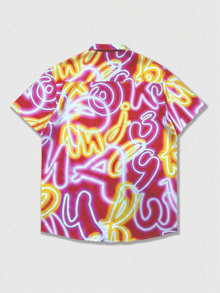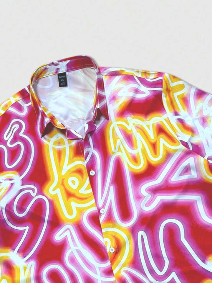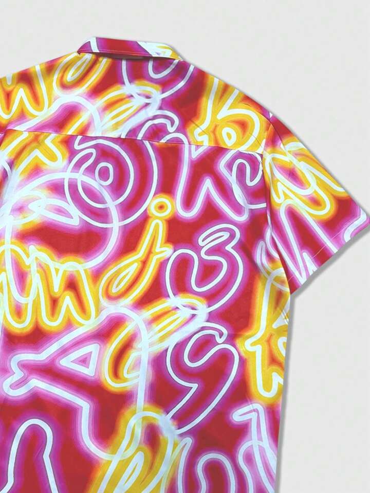 Street Life Chemise à manches courtes avec imprimé lettres, coupe asymétrique (style mode été pour hommes)