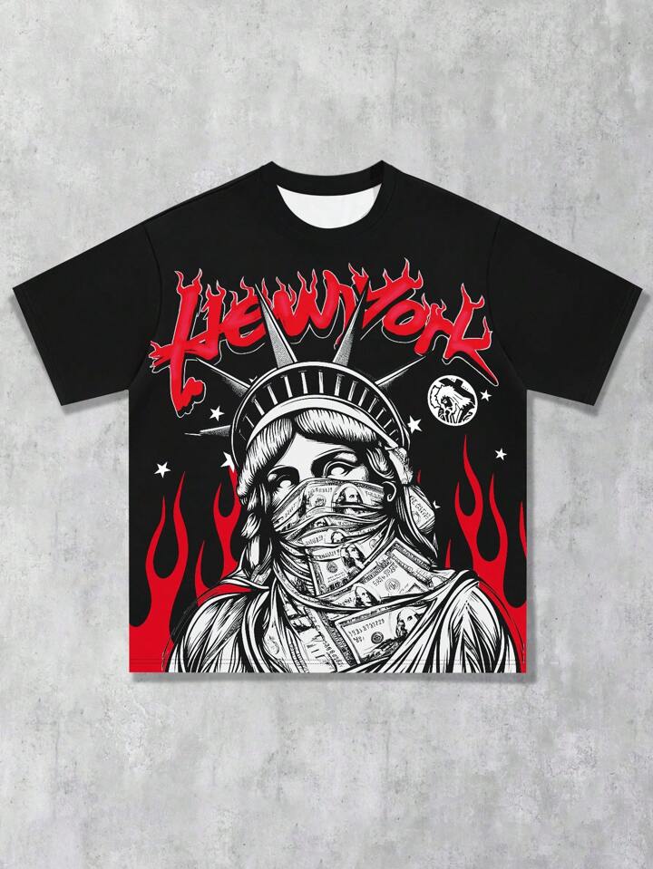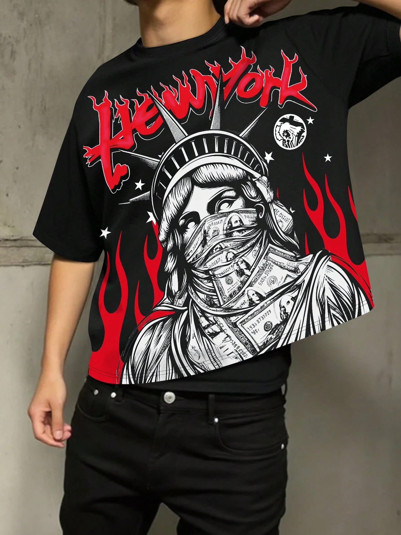 Street Life T-shirt homme mode été avec imprimé Statue de la Liberté