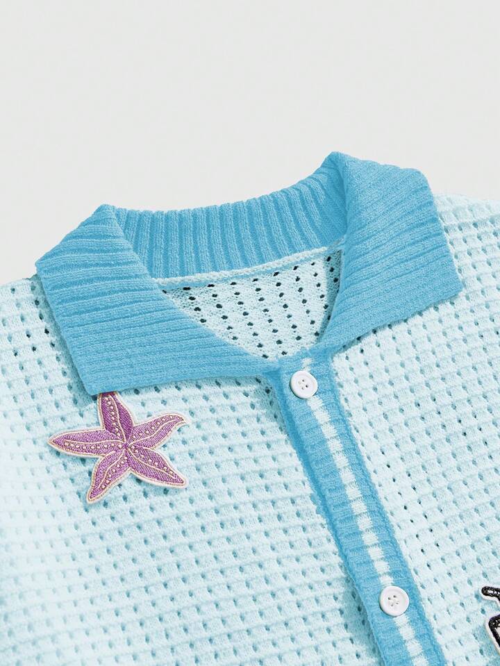 Street Life Hauts à mailles à boutonnage devant avec broderie d'arbre de noix de coco, pour hommes, idéal pour les vacances d'été