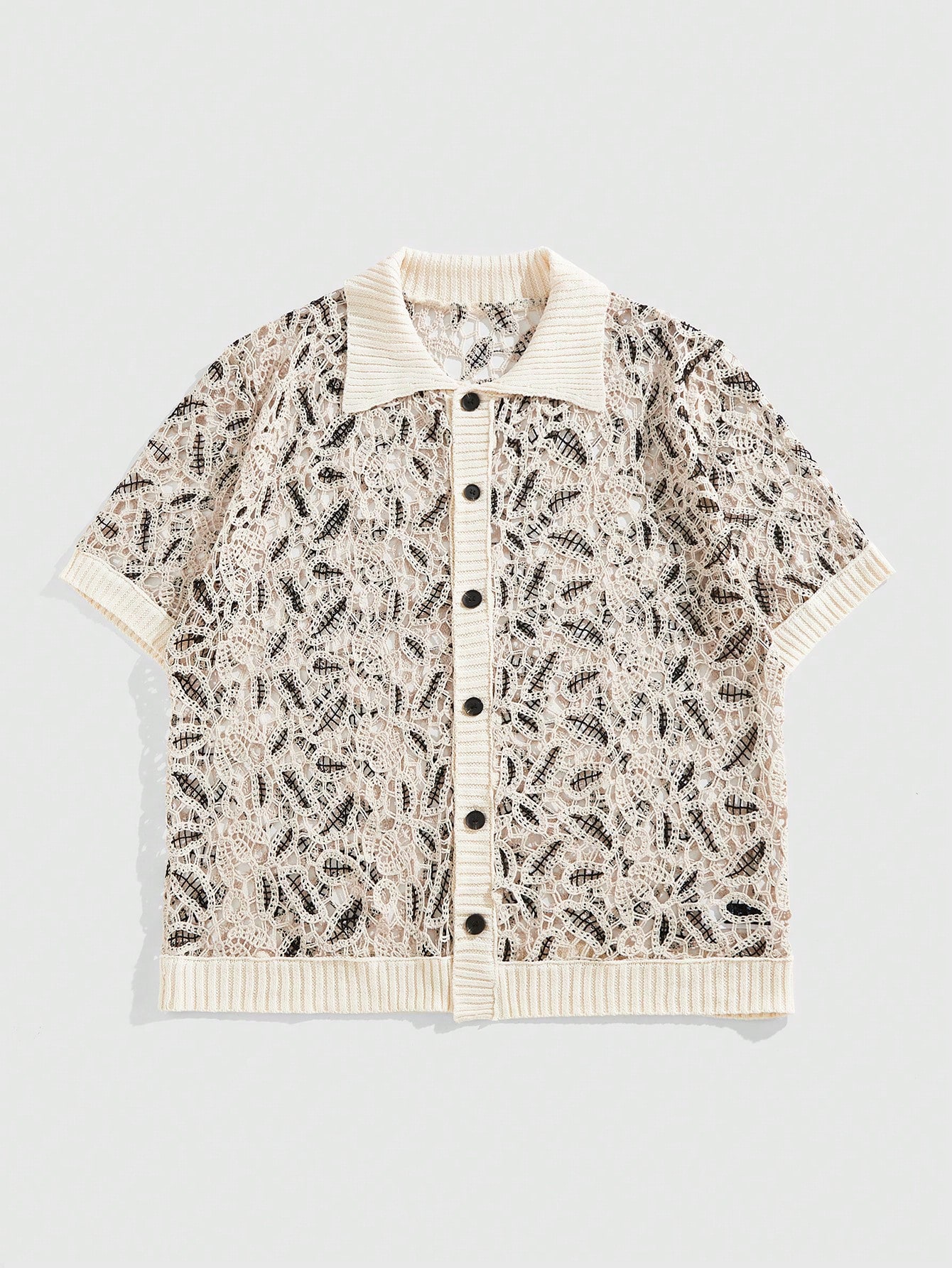 Street Life Top court tricoté avec motif tout-sur-tout et effet ajouré, style vacances d'été pour homme