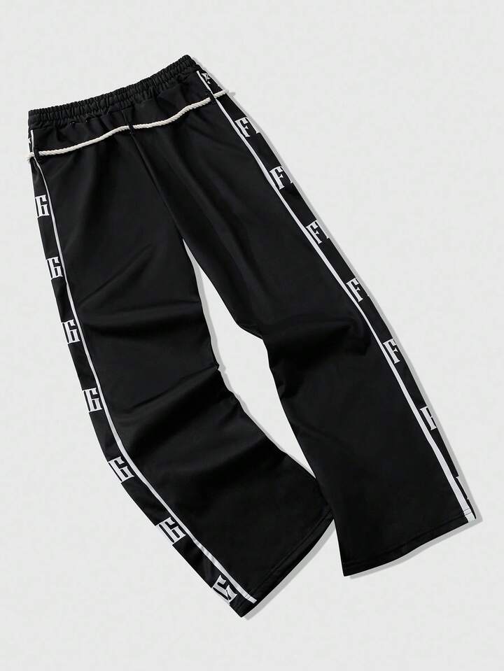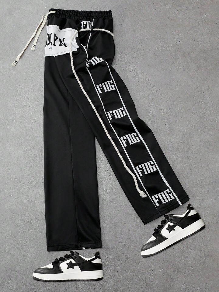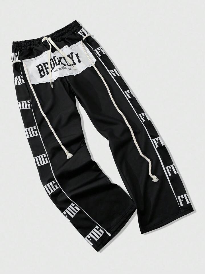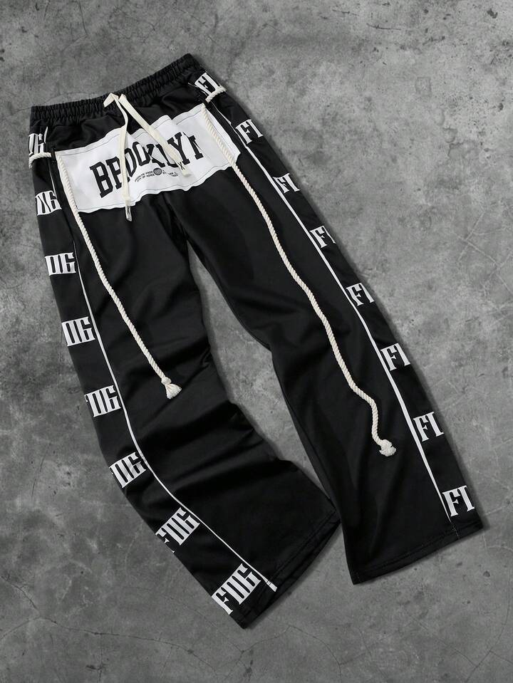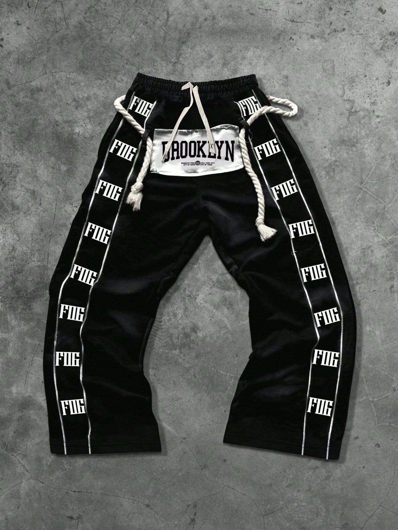 Street Life Pantalon de survêtement pour hommes avec appliqué brodé, cordon de serrage, style de rue avec imprimé en anglais américain