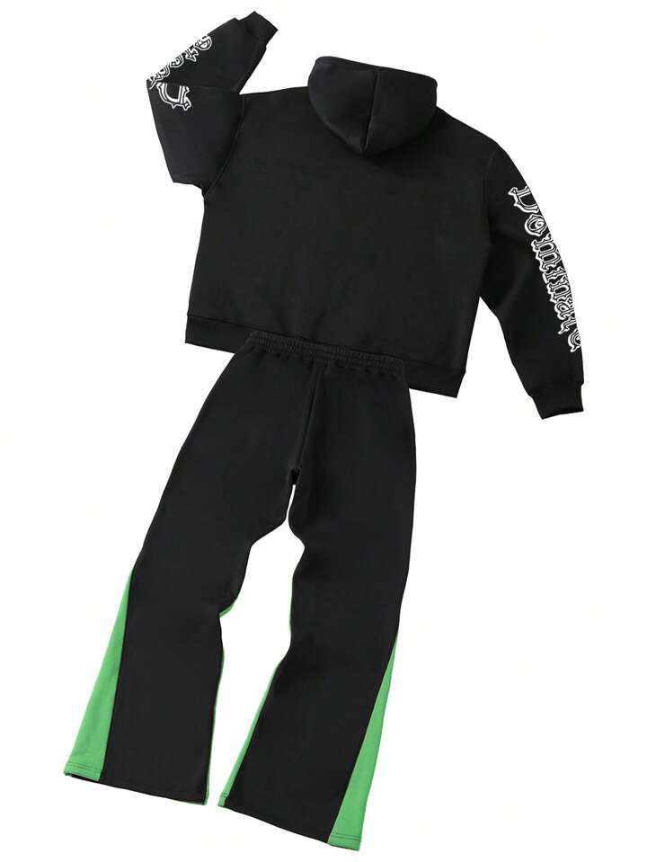 Street Life Ensemble de survêtement pour hommes (sweat-shirt à capuche ample et court + pantalon de survêtement évasé)